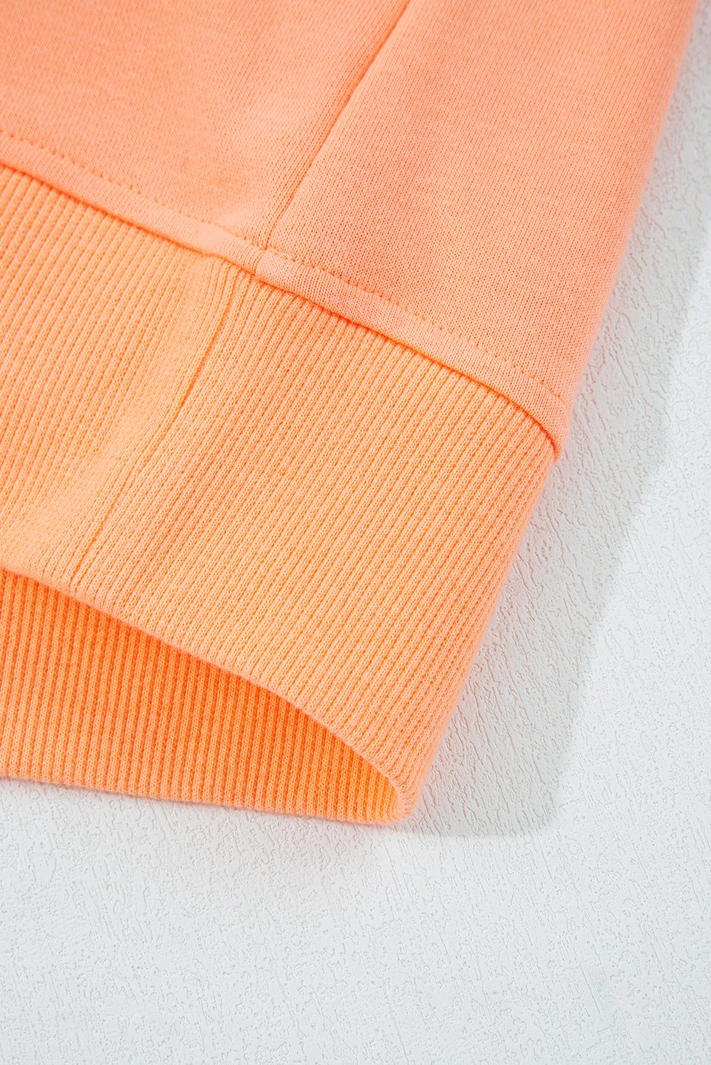 Plaid Floral Patchwork Kangaroo Pocket Hooded Top ‐ Grapefruit Orange / S