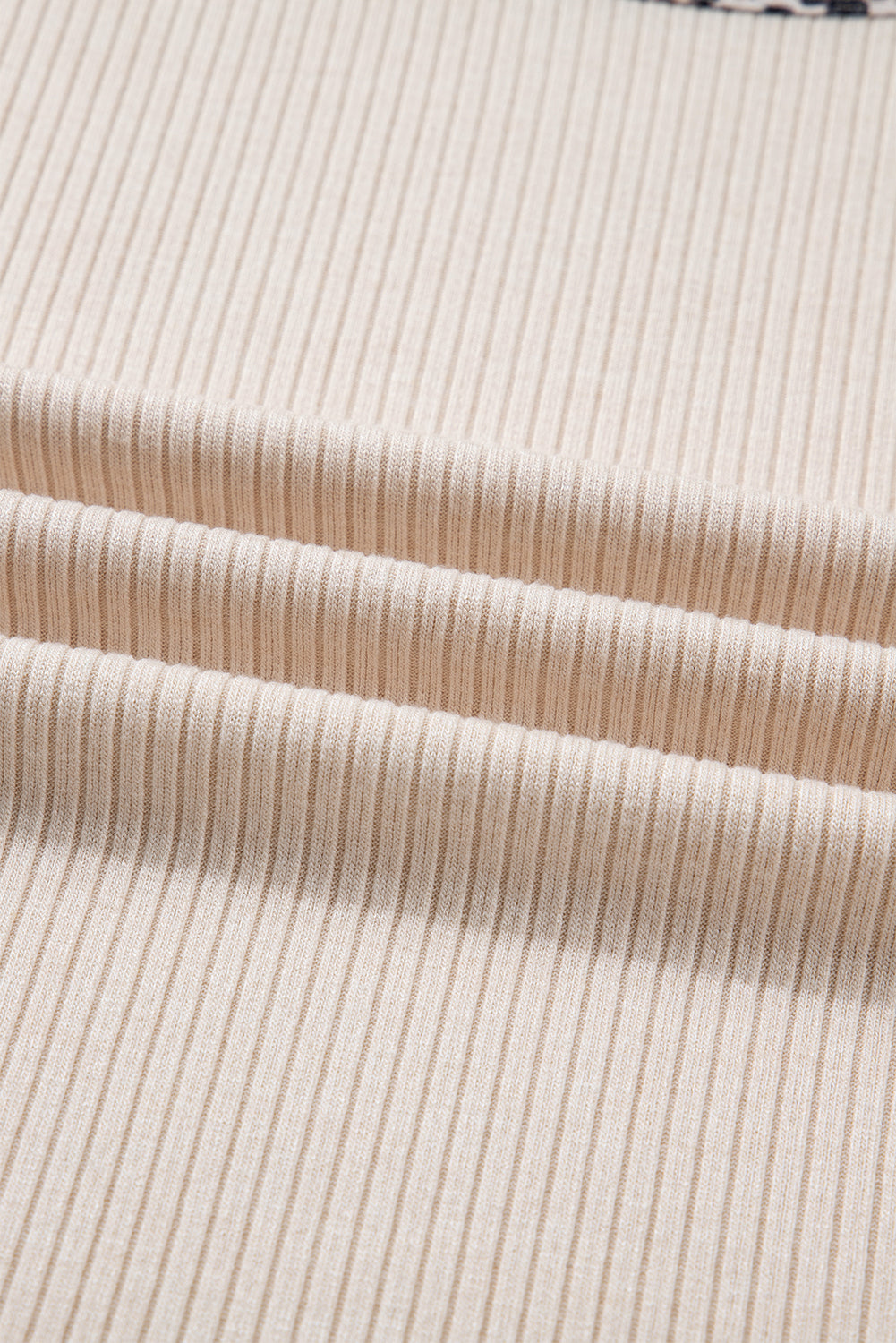 Plus Size Leopard Contrast Trim Ribbed Knit Top ‐ Parchment / 3X