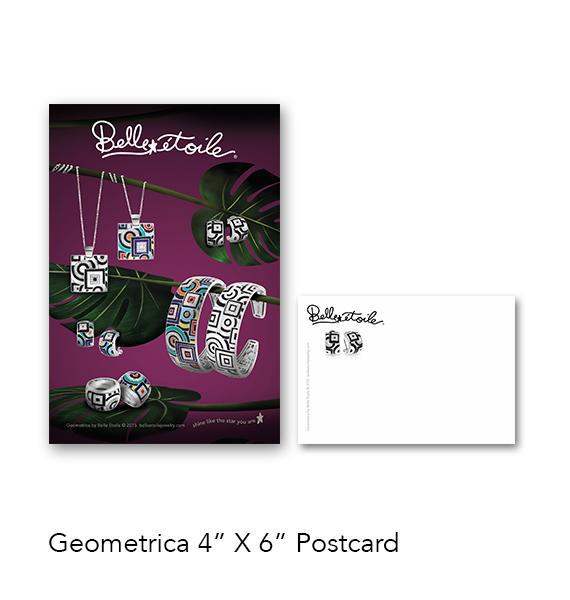 Postcards by Belle Étoile. Perfect for EDDM campaigns, a promotional item to include with purchases, and so much more. Specially priced for our retailers to show off and advertise Belle Étoile's beautiful artwork and collections. All postcards are 4" x 6".