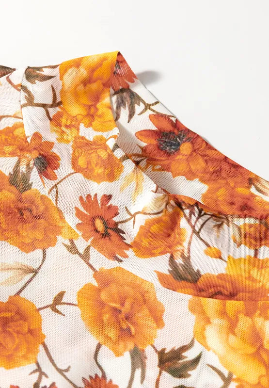 Printed Mock Neck Flare Sleeve Top ‐ Tangerine / (US 4-6)S