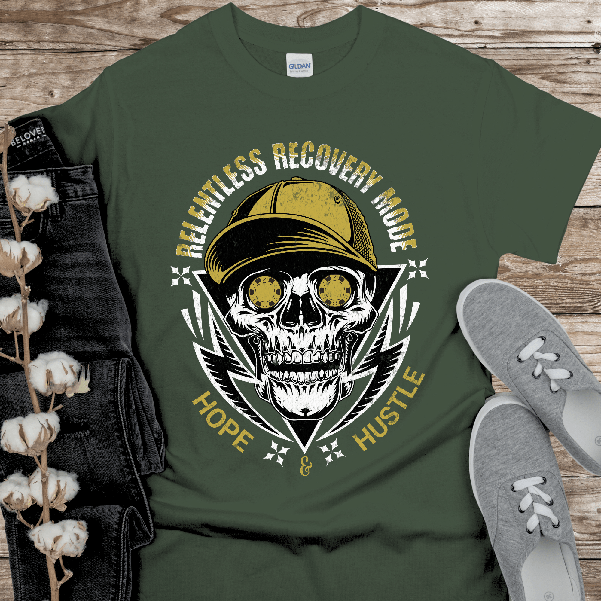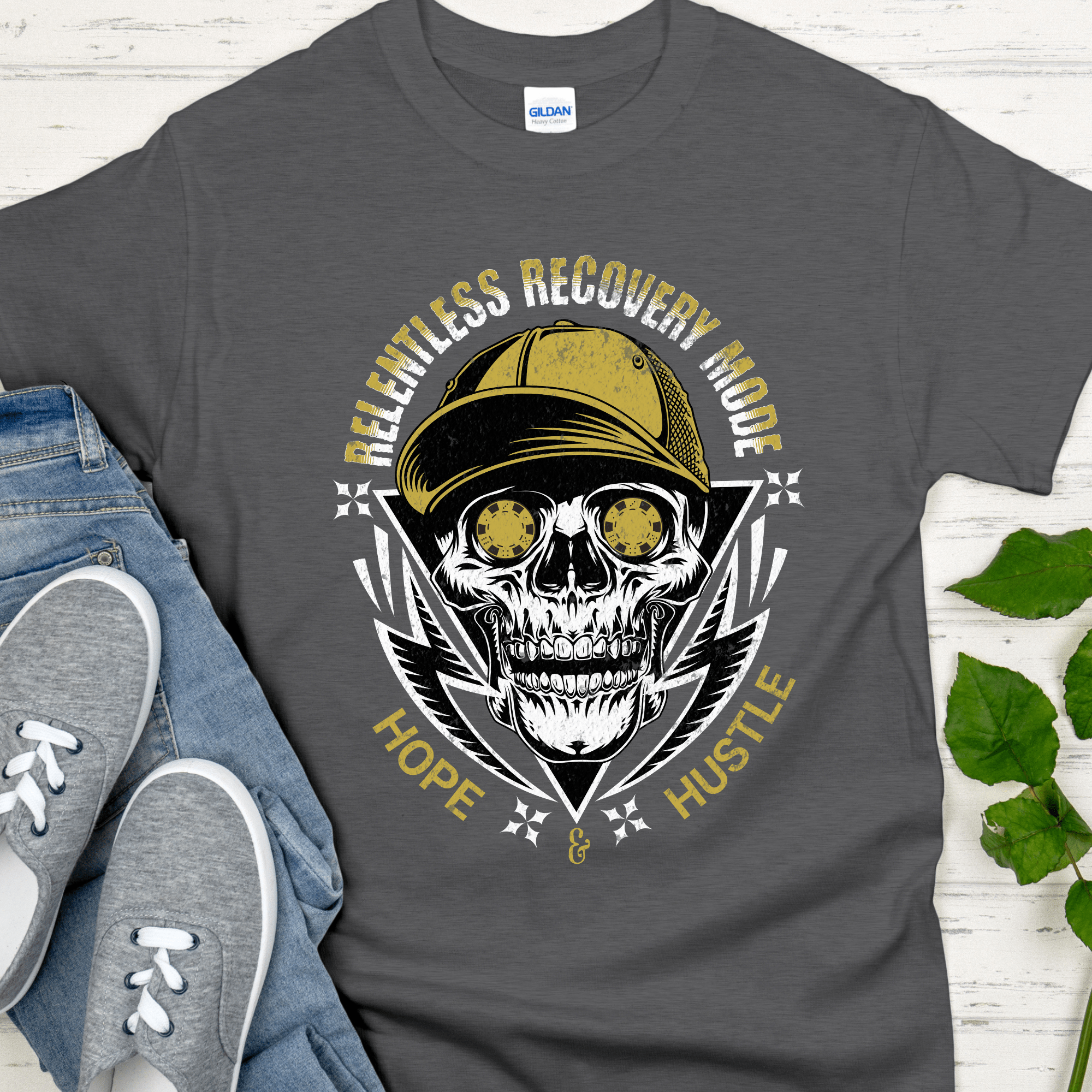 Commit to your recovery journey with this bold, stylish t-shirt! Show the world you're relentless with its empowering skull design and motivational message. Wear your ambition and courage daily, as a reminder of your hope, hustle, and commitment!