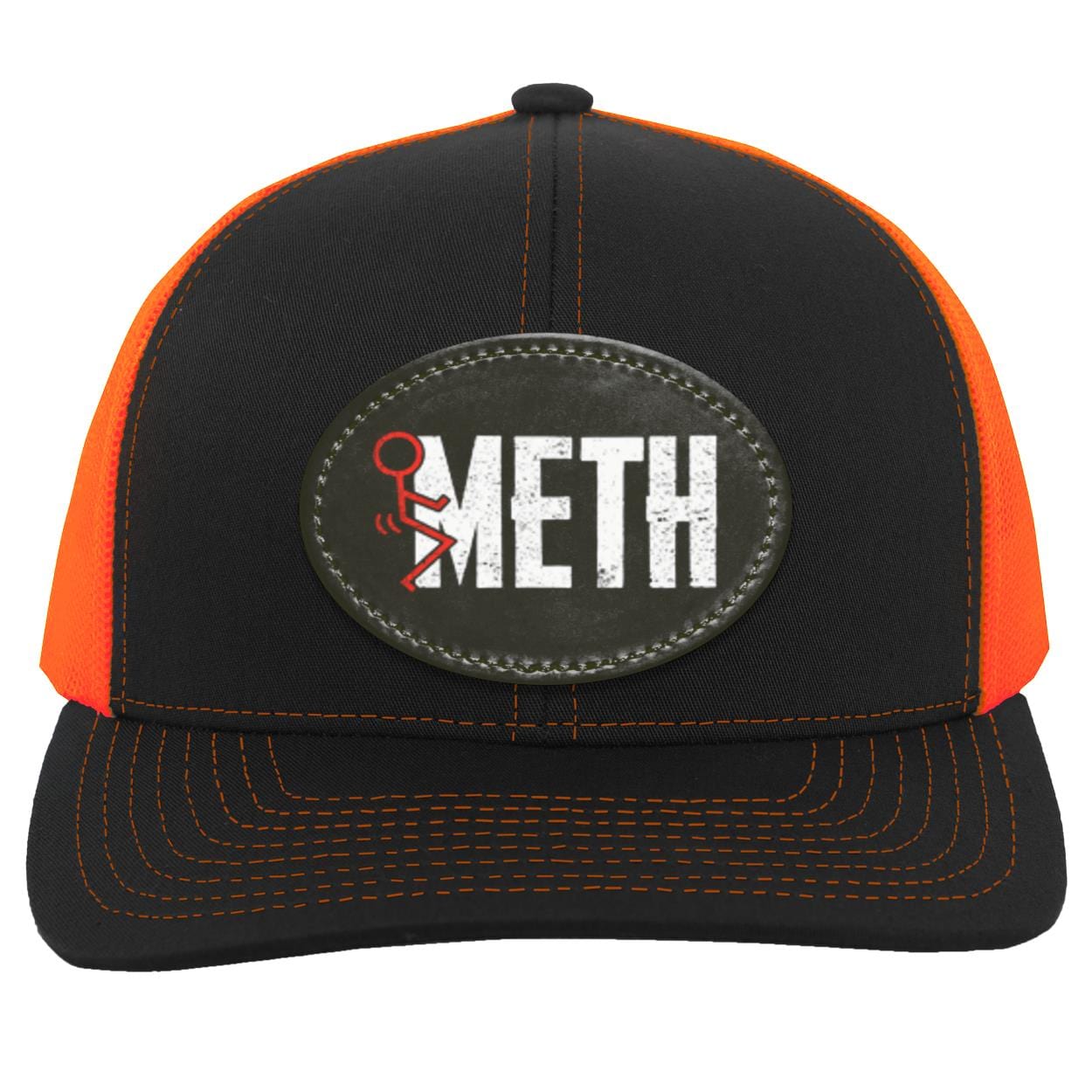 Recovery Trucker Snapback Hat | Inspiring Sobriety | F#CK Meth ‐ Black/Neon Orange / Oval