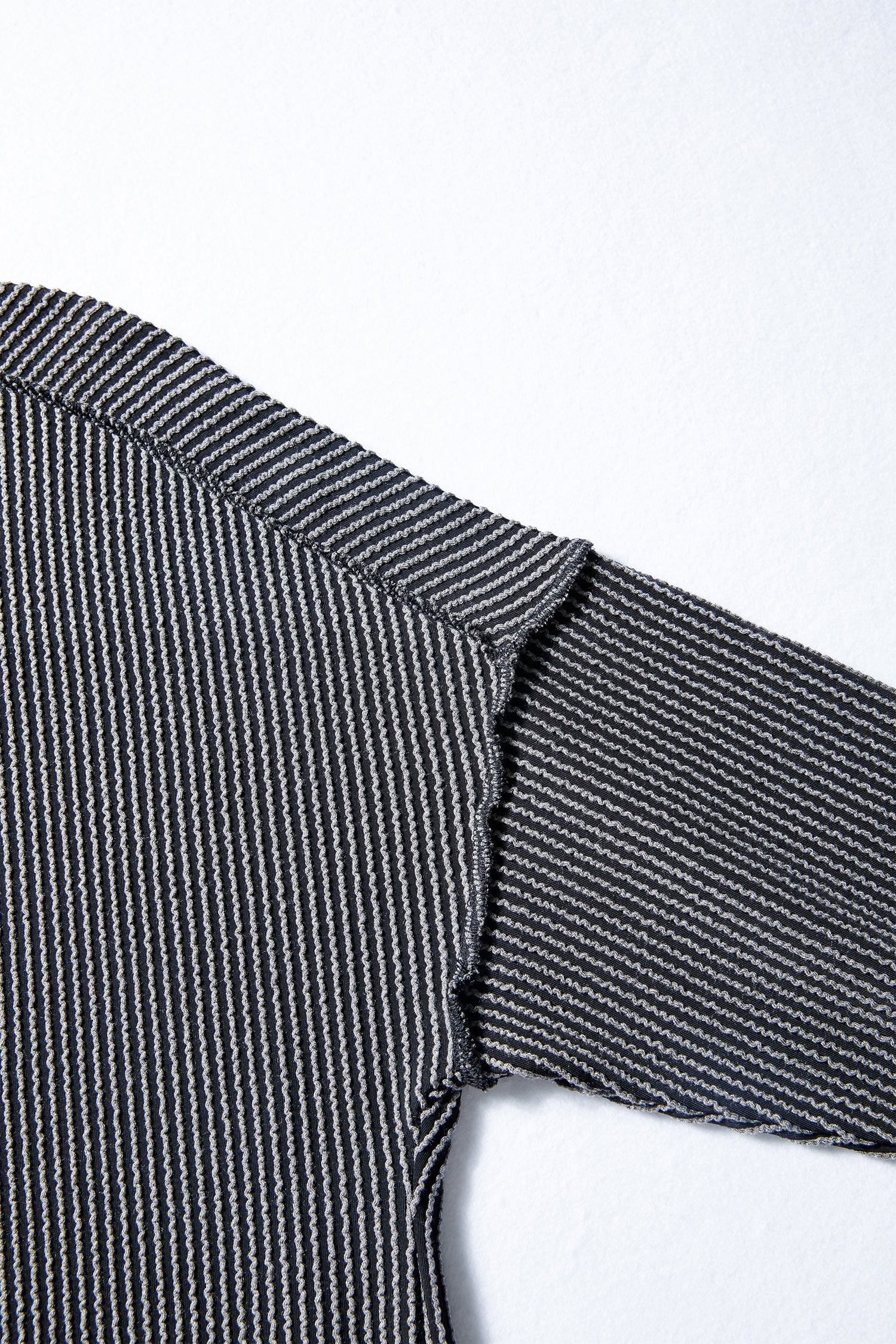Solid Corded Knit Long Sleeve Top ‐ Black / S