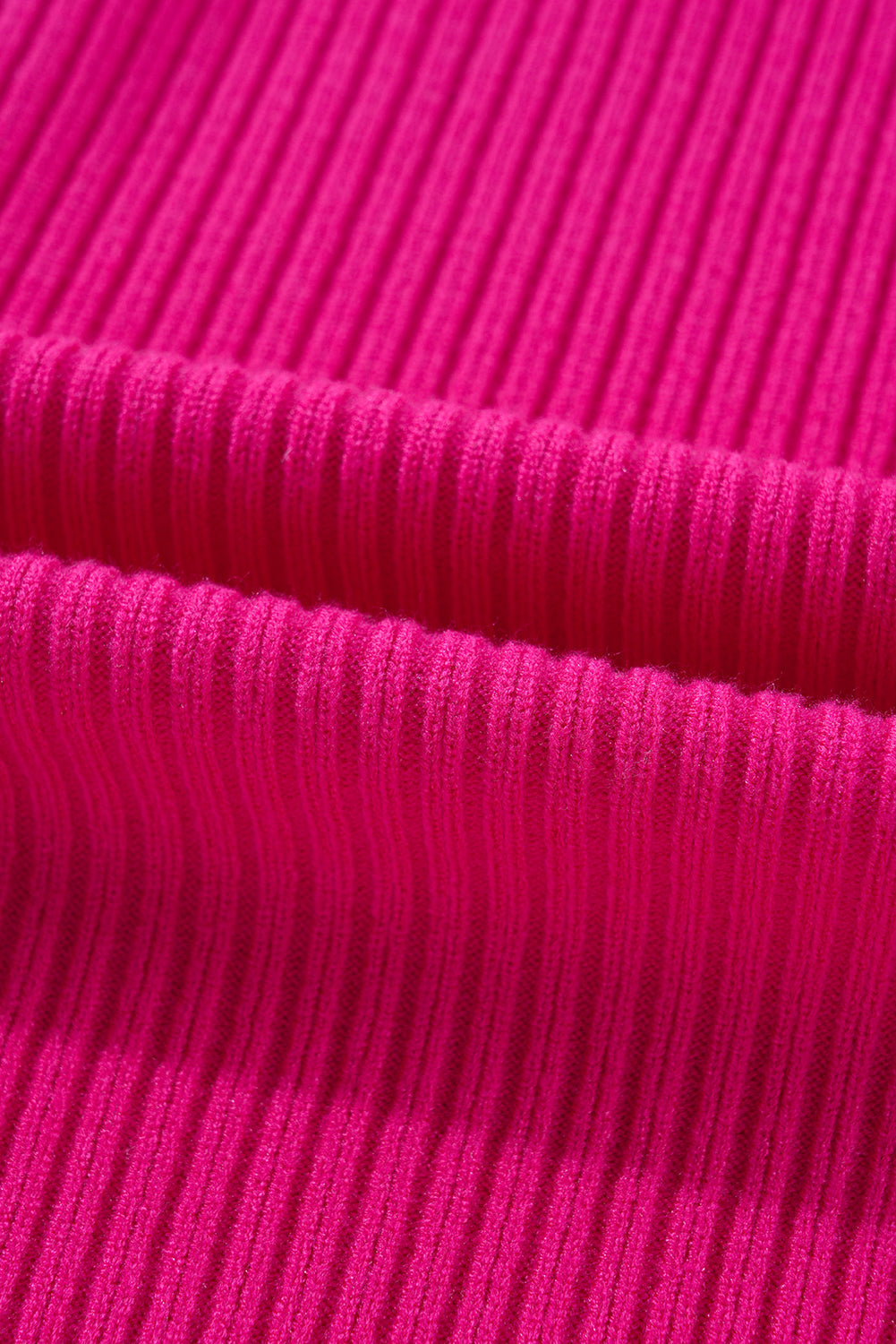 Solid Ribbed Knit Patch Pocket Short Sleeve Sweater ‐ Rose Red / S