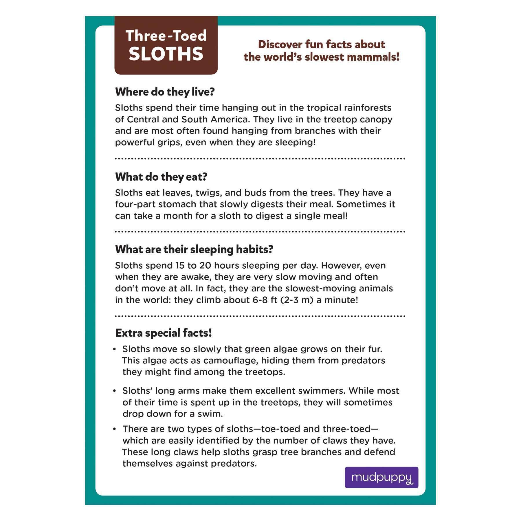 Three-Toed Sloth Mini Puzzle from Mudpuppy is a small size puzzle featuring a realistic image of a Three-Toed Sloth in its natural habitat. The 48 piece finished puzzle measures 8 x 5.75" so it’s perfect for train or airline tray tables. A two-sided insert includes an image of the puzzle on one side and fun facts about the Three-Toed Sloth on the other!