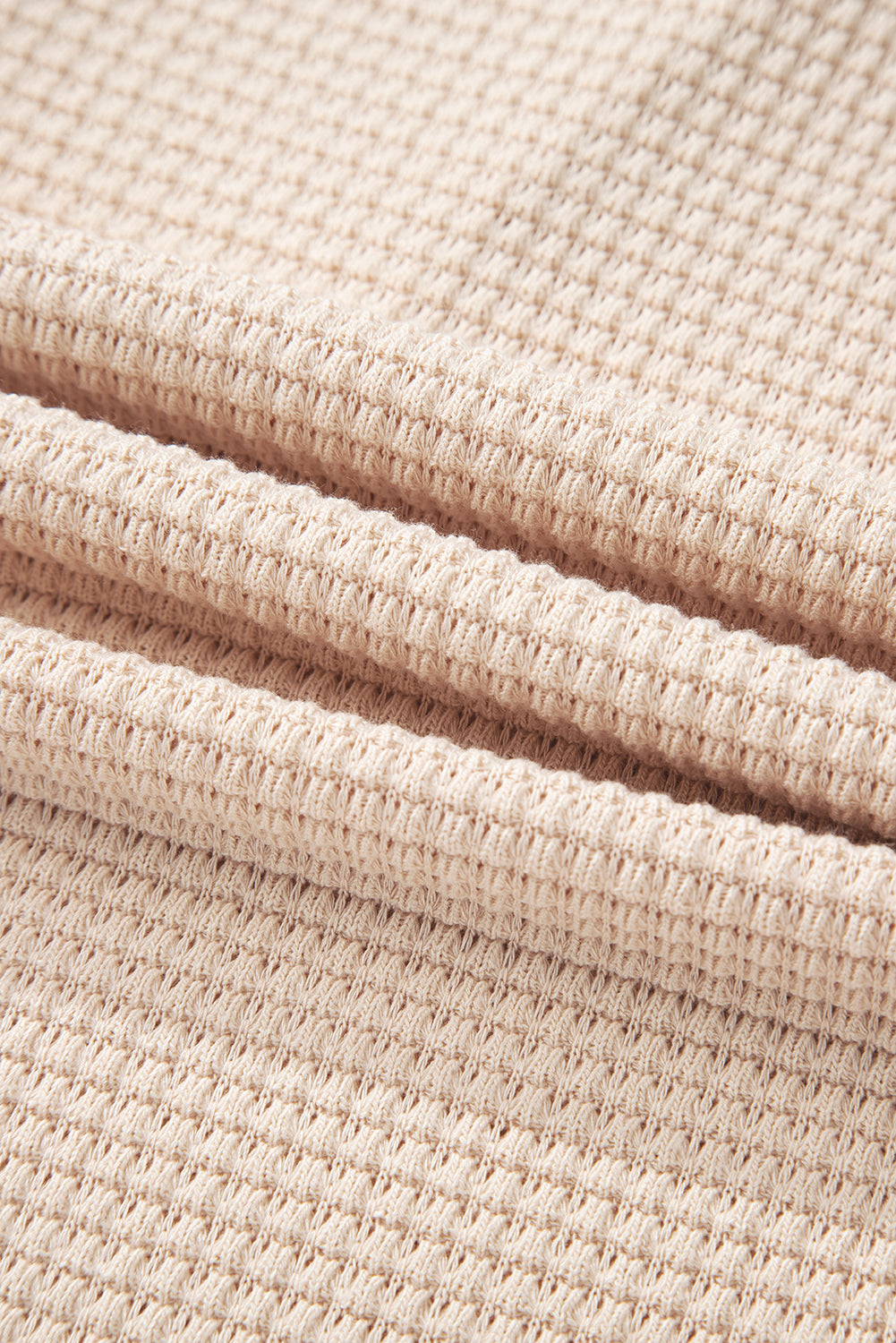 Waffle Patchwork Drop Shoulder Long Sleeve Hooded Top ‐ Oatmeal / M