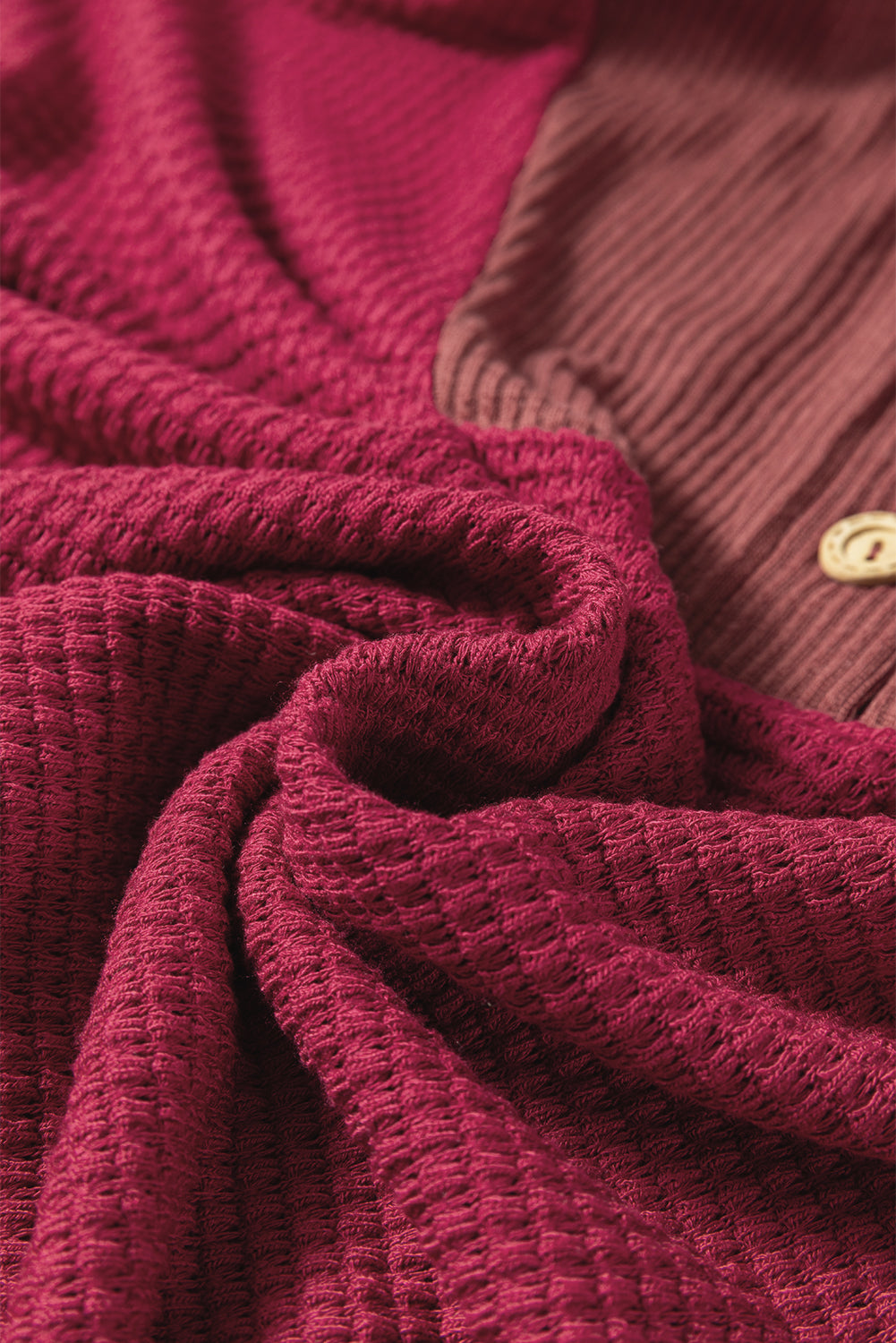 Waffle Patchwork Drop Shoulder Long Sleeve Hooded Top ‐ Racing Red / S