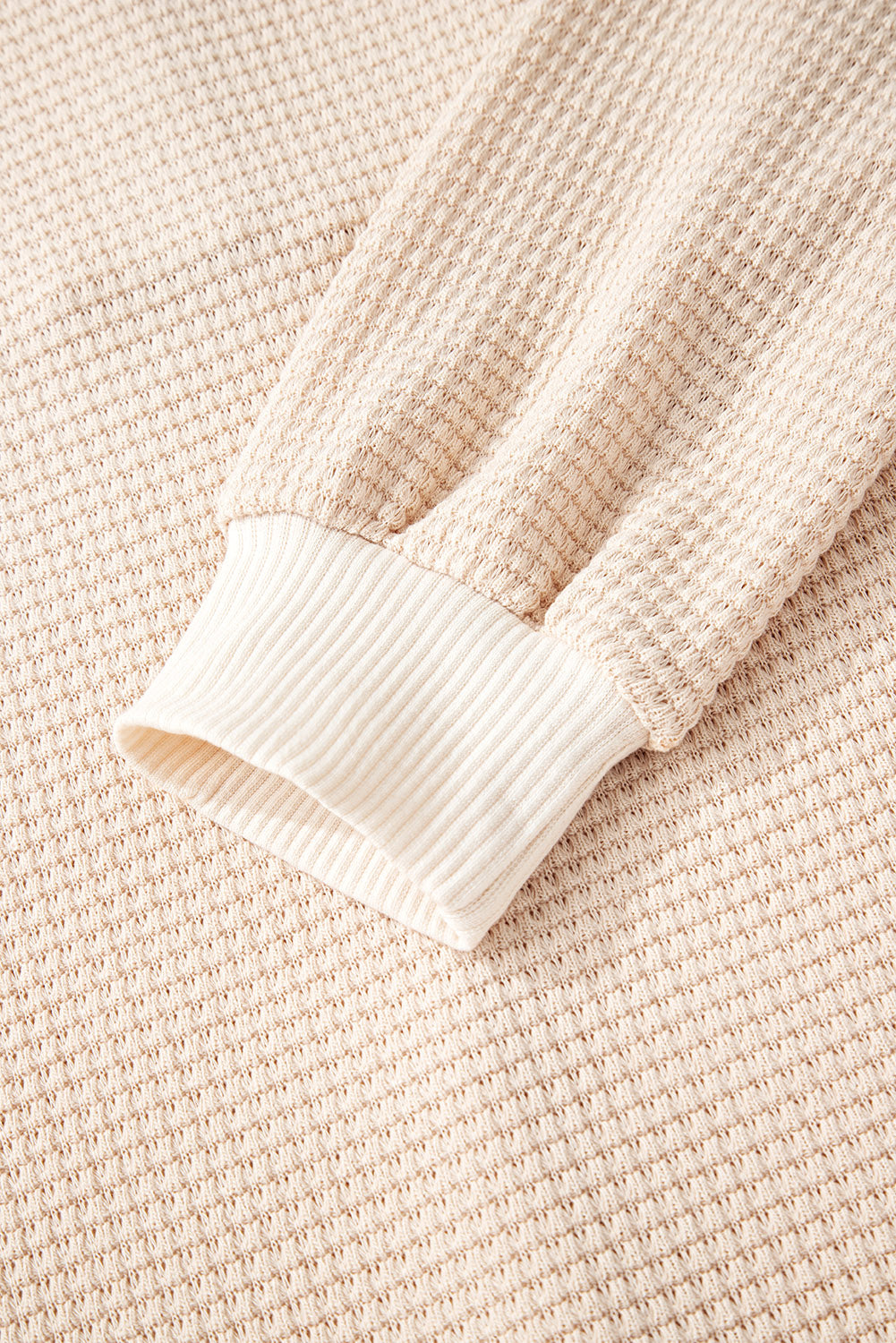 Waffle Patchwork Drop Shoulder Long Sleeve Hooded Top ‐ Oatmeal / S