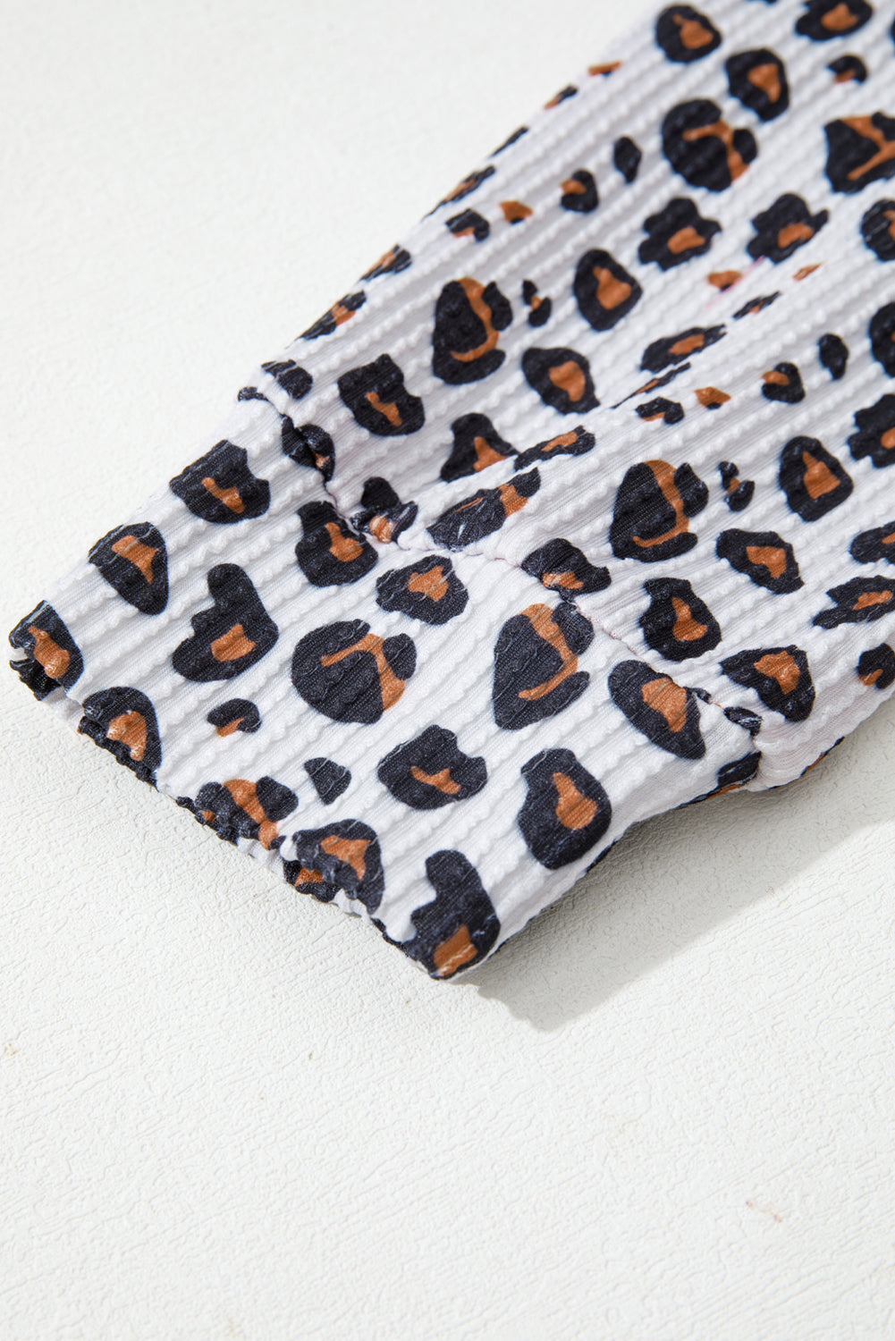 Western Leopard Corded Knit Patchwork Shacket ‐ Dark Khaki / L