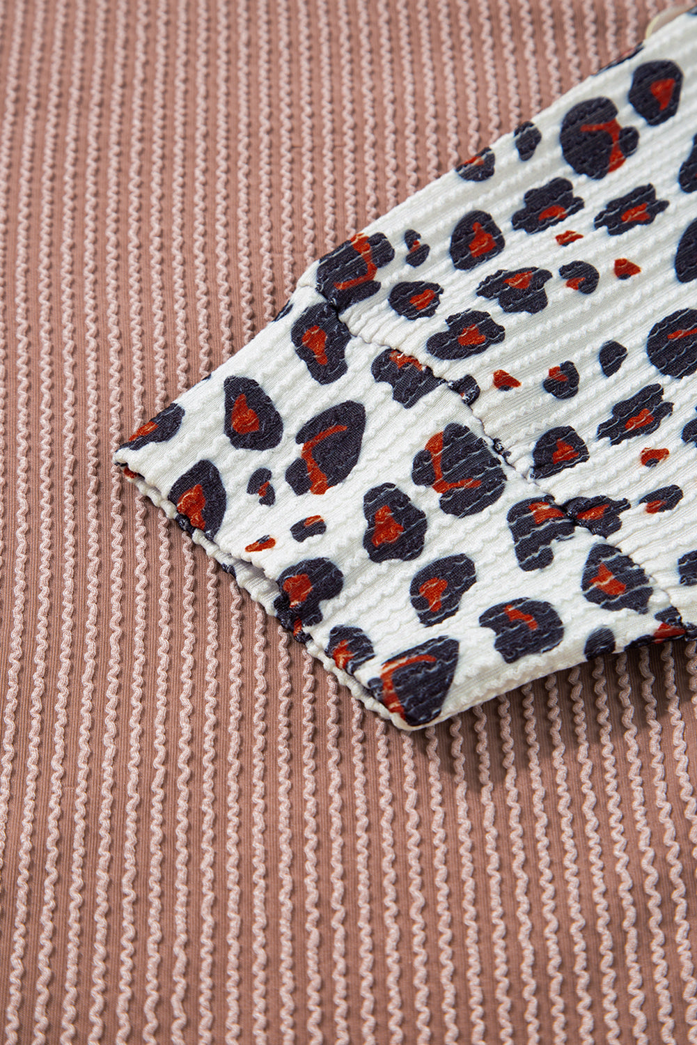 Western Leopard Corded Knit Patchwork Shacket ‐ Dark Khaki / S