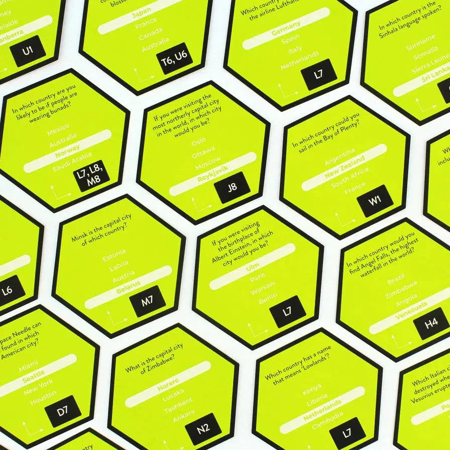 Tackle trivia from all over the globe in this fun trivia game. Don't worry if you got the wrong answer, you can still score bonus points if you work out Where on Earth the answer is on the included travel map! Race your friends and family around the world and be the first to score 10 points!