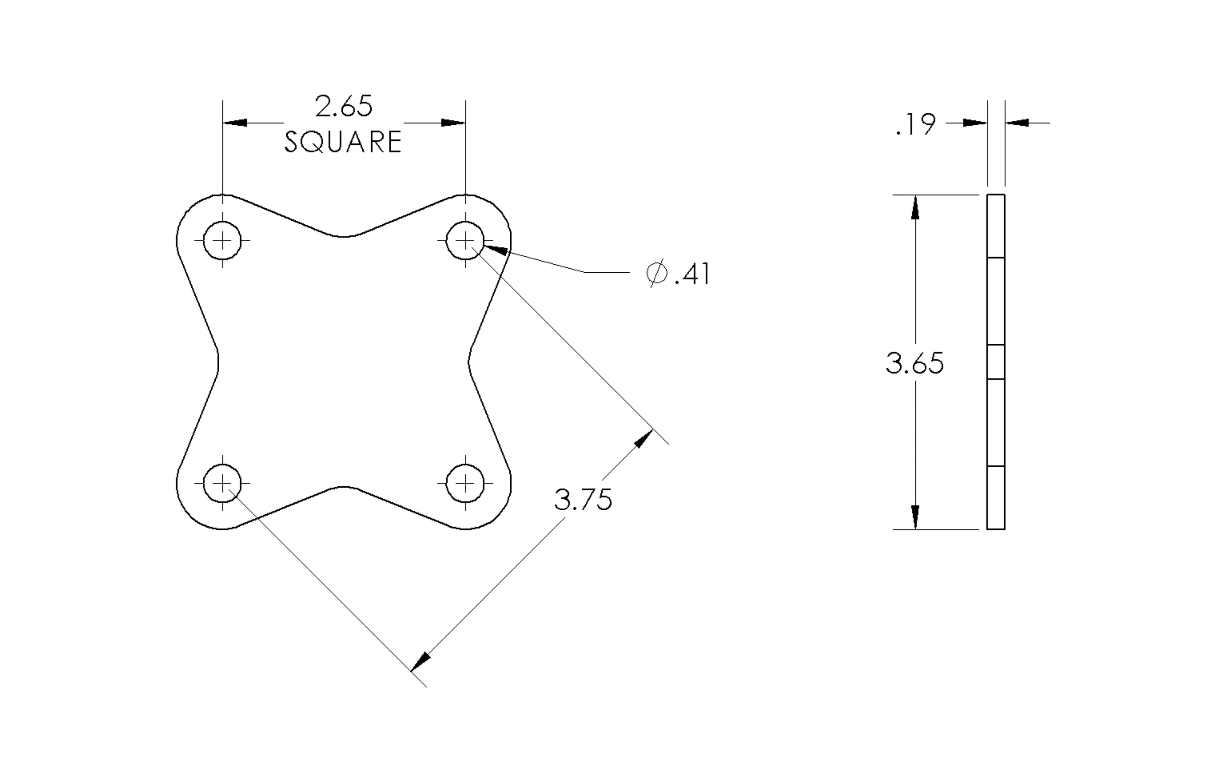 This 4-hole solid mounting plate is a simple, weld-ready solution for securely bolting down roll cages, rock sliders, or custom brackets. The 3/8" diameter bolt holes are spaced to match our large 2-hole oval mounting plates (Part Number R2071), making it easy to mix and match for your project. Cut from 3/16" HR P&O steel, it’s tough enough for serious abuse without adding unnecessary weight.
