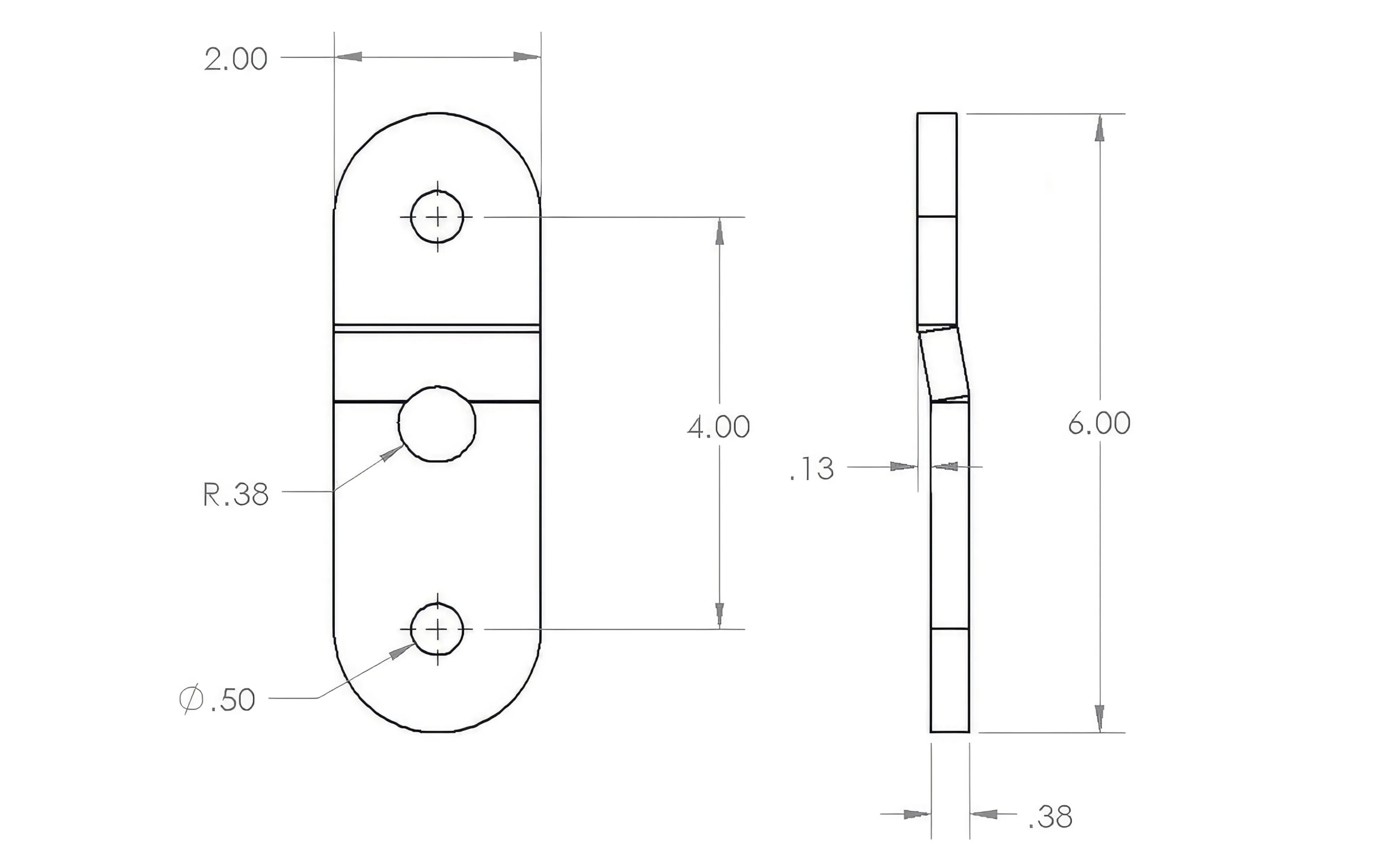 This 4" leaf spring shackle features a 1/8" built-in offset, giving you a total of 1/4" offset when paired. It’s just enough to adapt different spring widths without replacing your hangers—perfect for setups like running 2.5" Chevy springs on a Toyota with 2.75" hangers. Made from 3/8" A50 plate steel and laser cut for precision, these shackles are trail-proven tough. The 0.75" center hole is ready for an optional reinforcement sleeve if you want to make them even stronger.