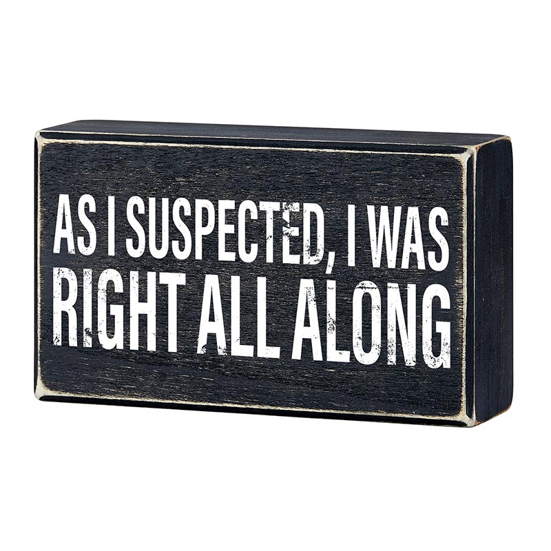 As I Suspected, I Was Right All Along Box Sign | Rustic Black Wood