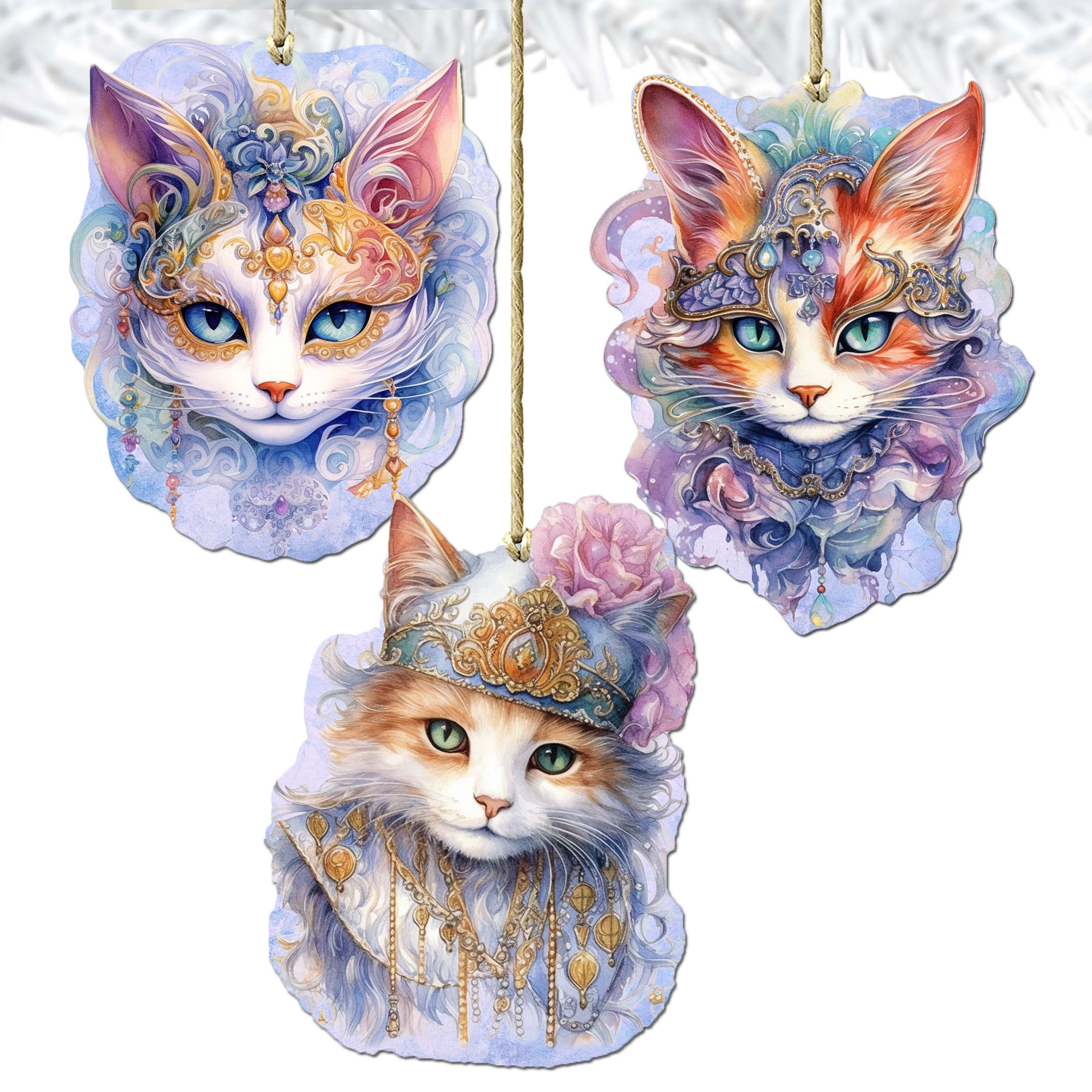 Beautiful Cats Decorative Eco Wood Ornaments Set of 3 by G. Debrekht - Christmas Decor - 8091033-S3