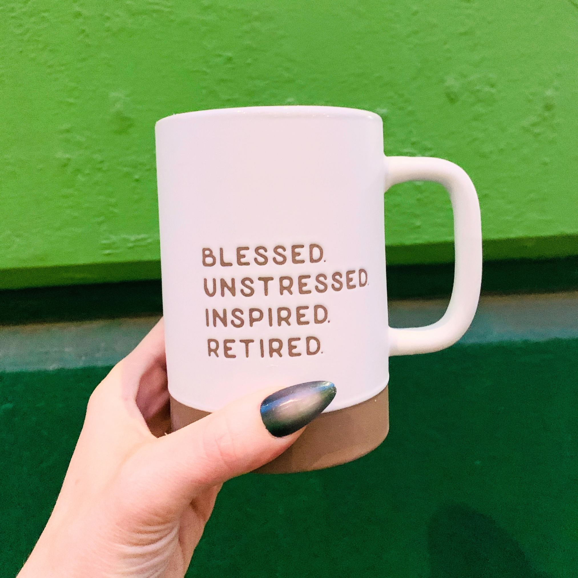 Blessed Unstressed Inspired Retired Signature Ceramic Mug | Coffee Tea Cup | 17oz