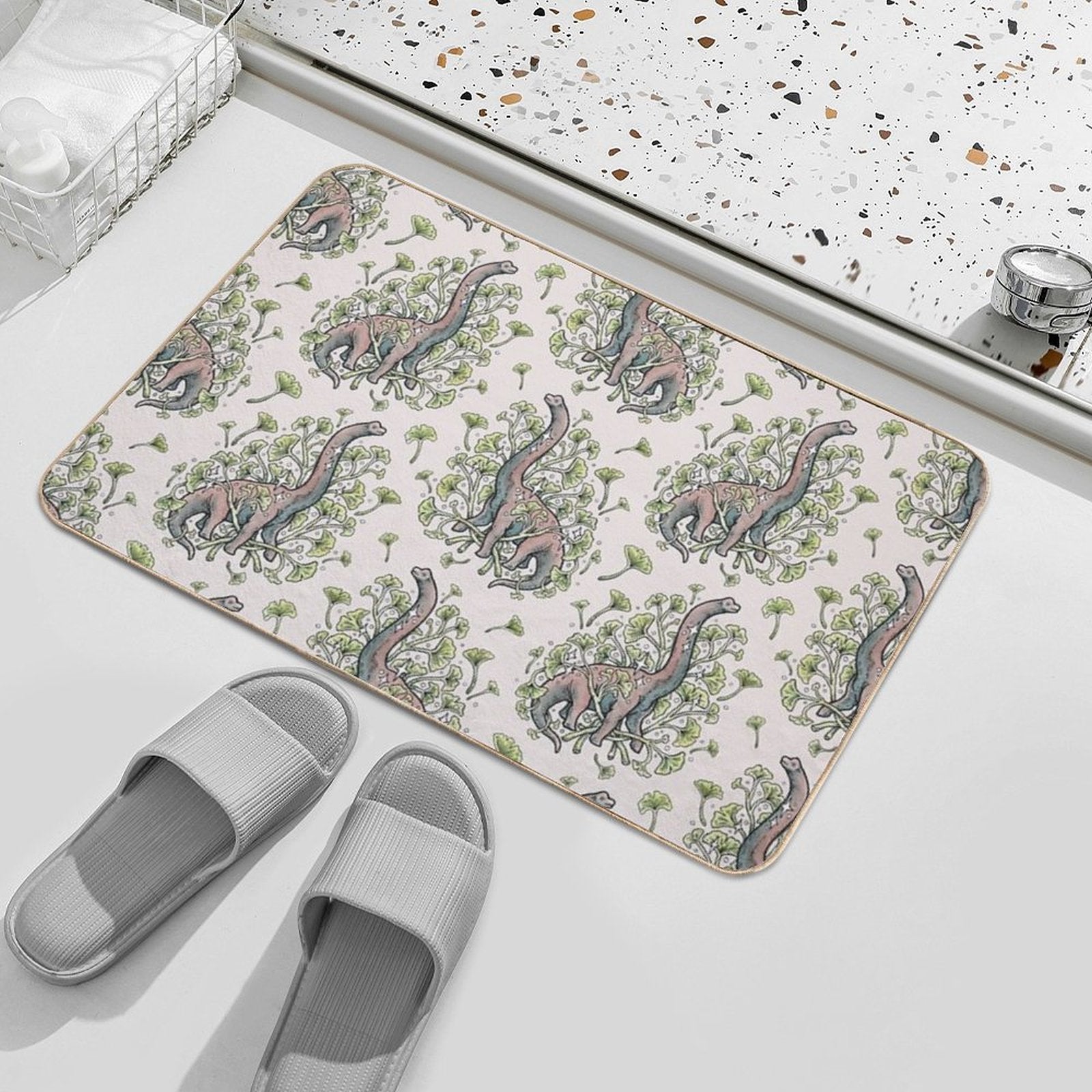 Brachio Ginkgo Calm Color Palette Dinosaur Botanical Art Easy Maintenance Bath Mat