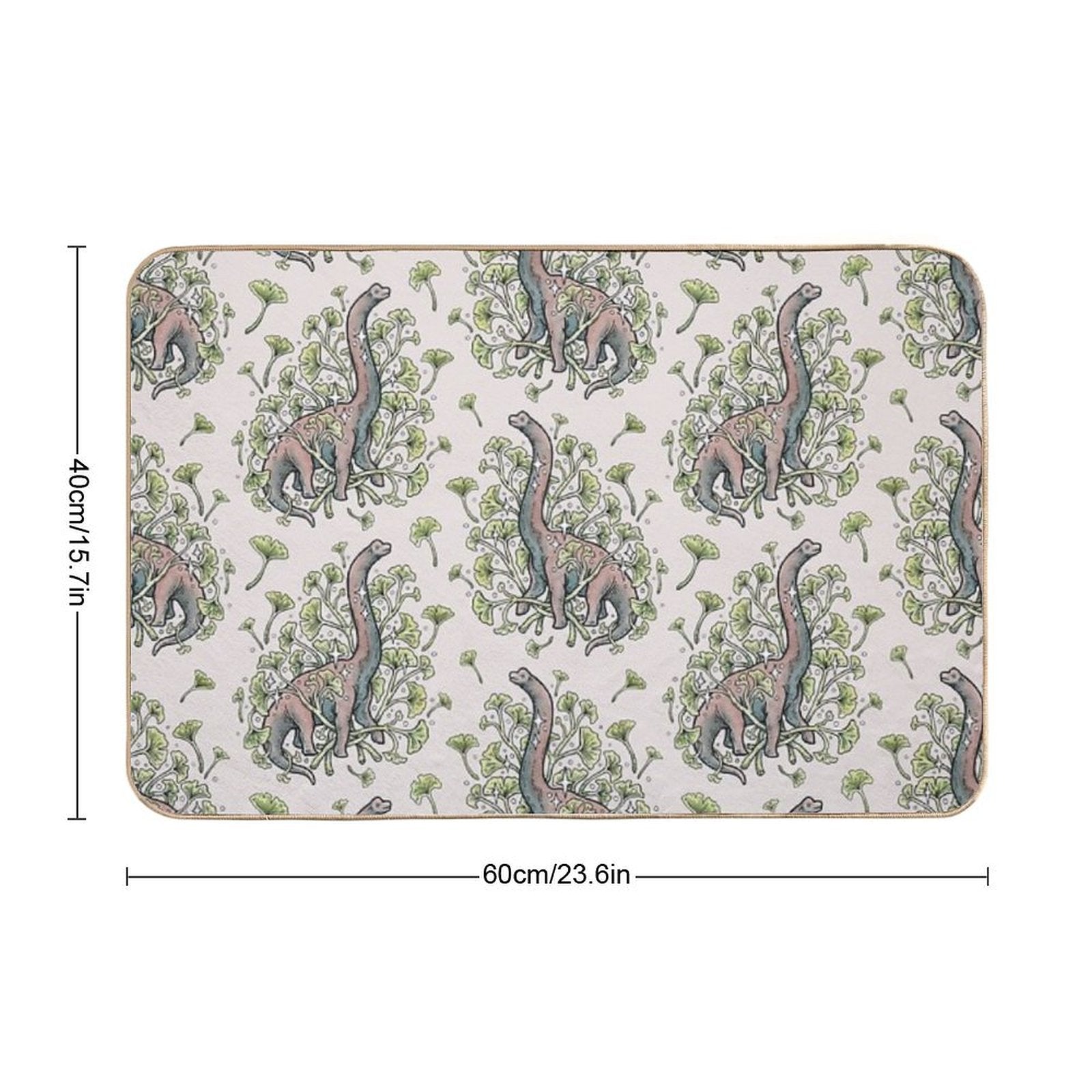 Brachio Ginkgo Calm Color Palette Dinosaur Botanical Art Easy Maintenance Bath Mat ‐ 40x60cm