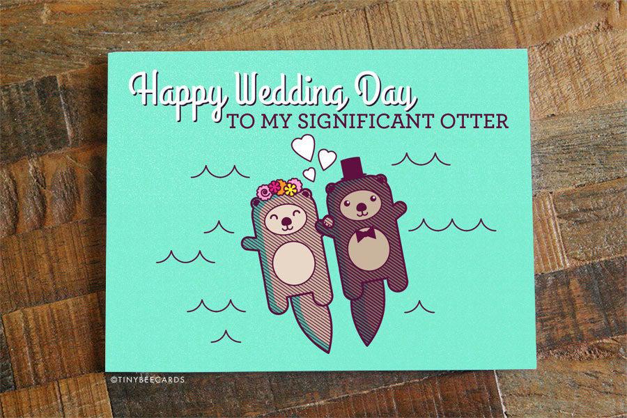 "Happy Wedding Day to my Significant Otter!" A super cute card with bride and groom otters holding hands, to give to your groom or bride on your wedding day.
