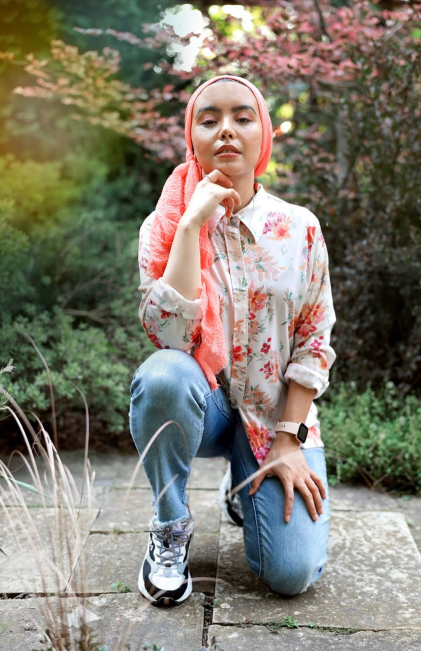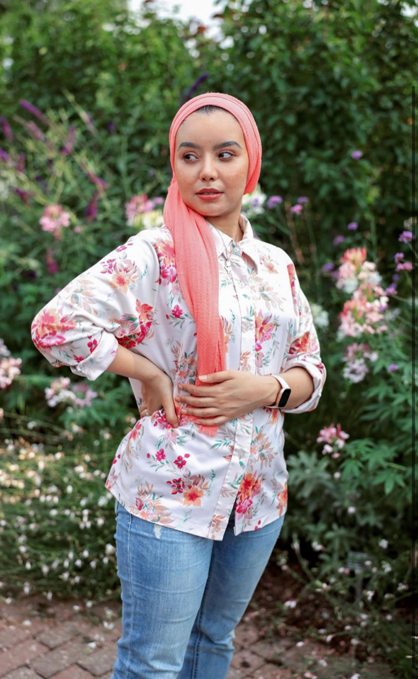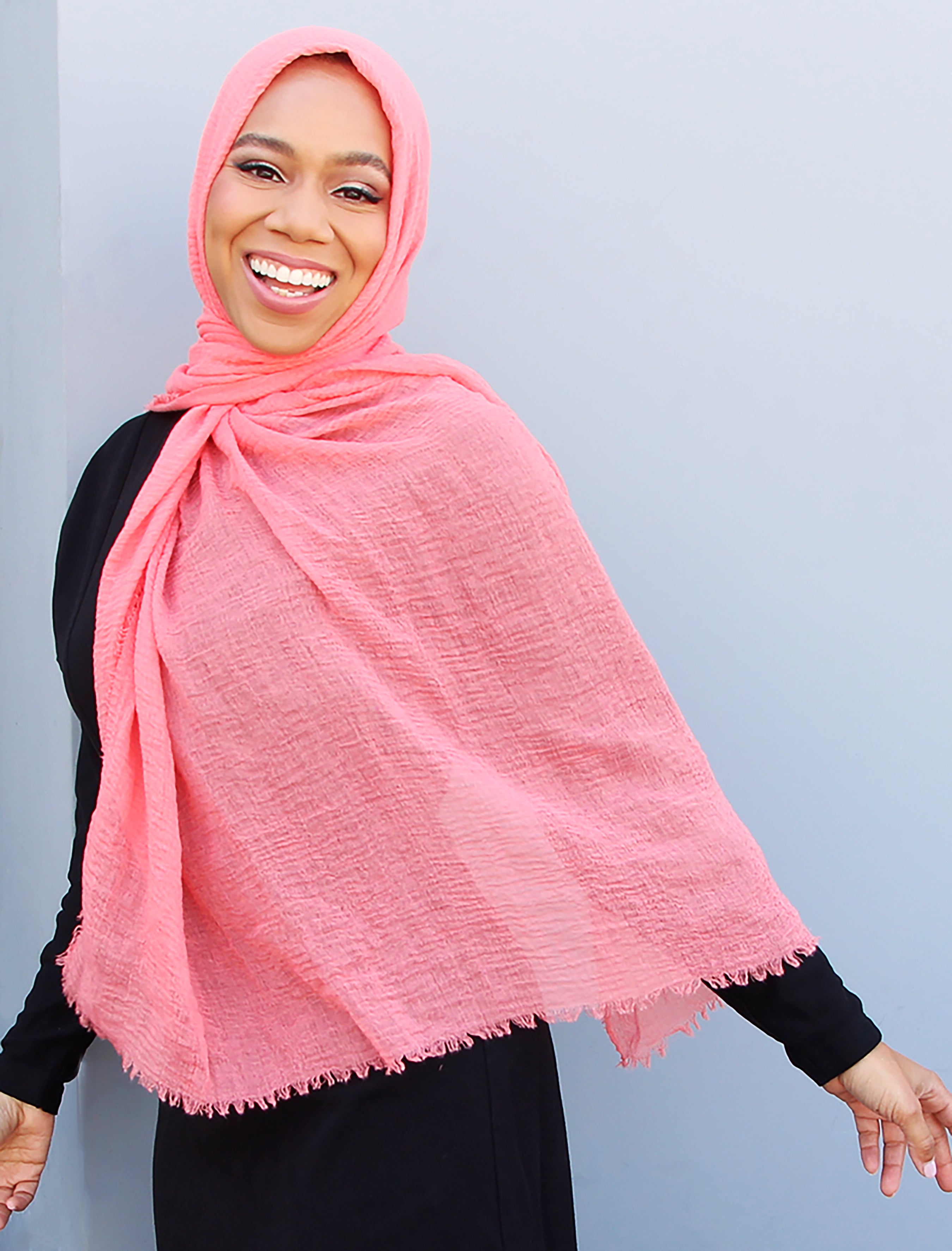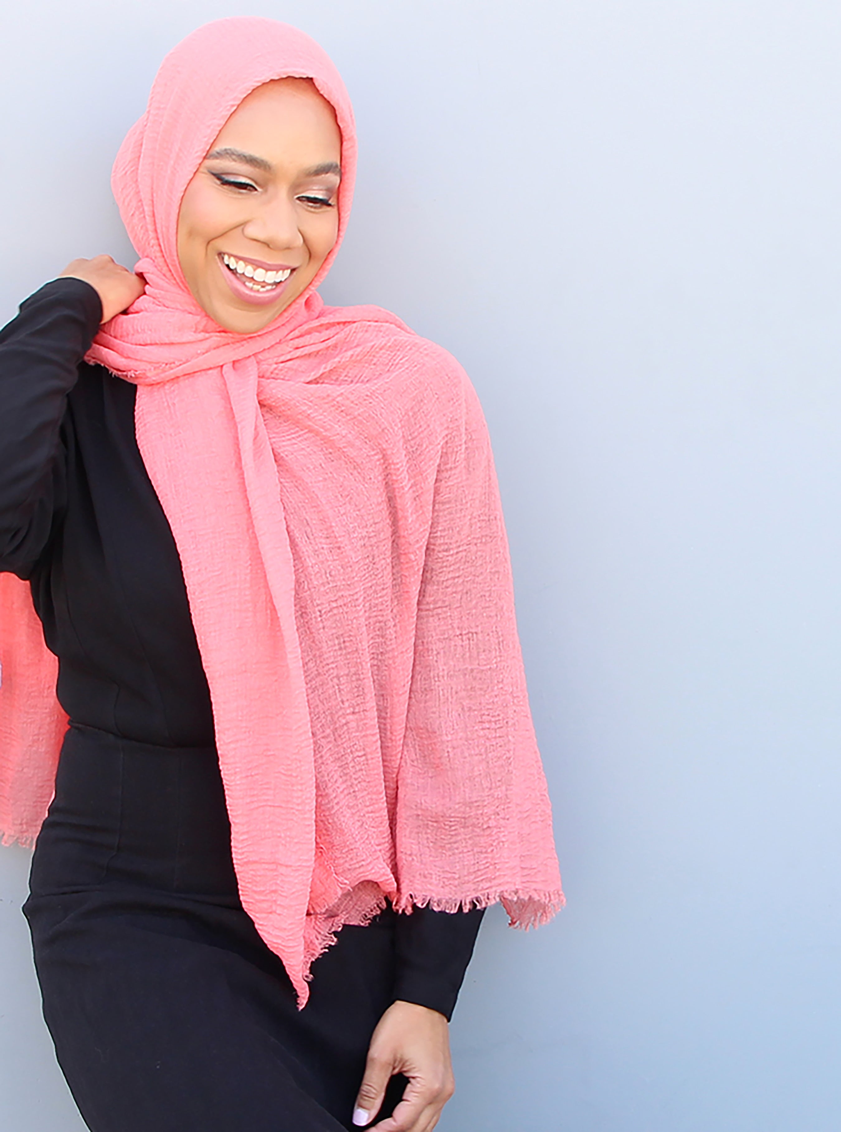 Slightly crinkled cotton scarf with lightly frayed edges.