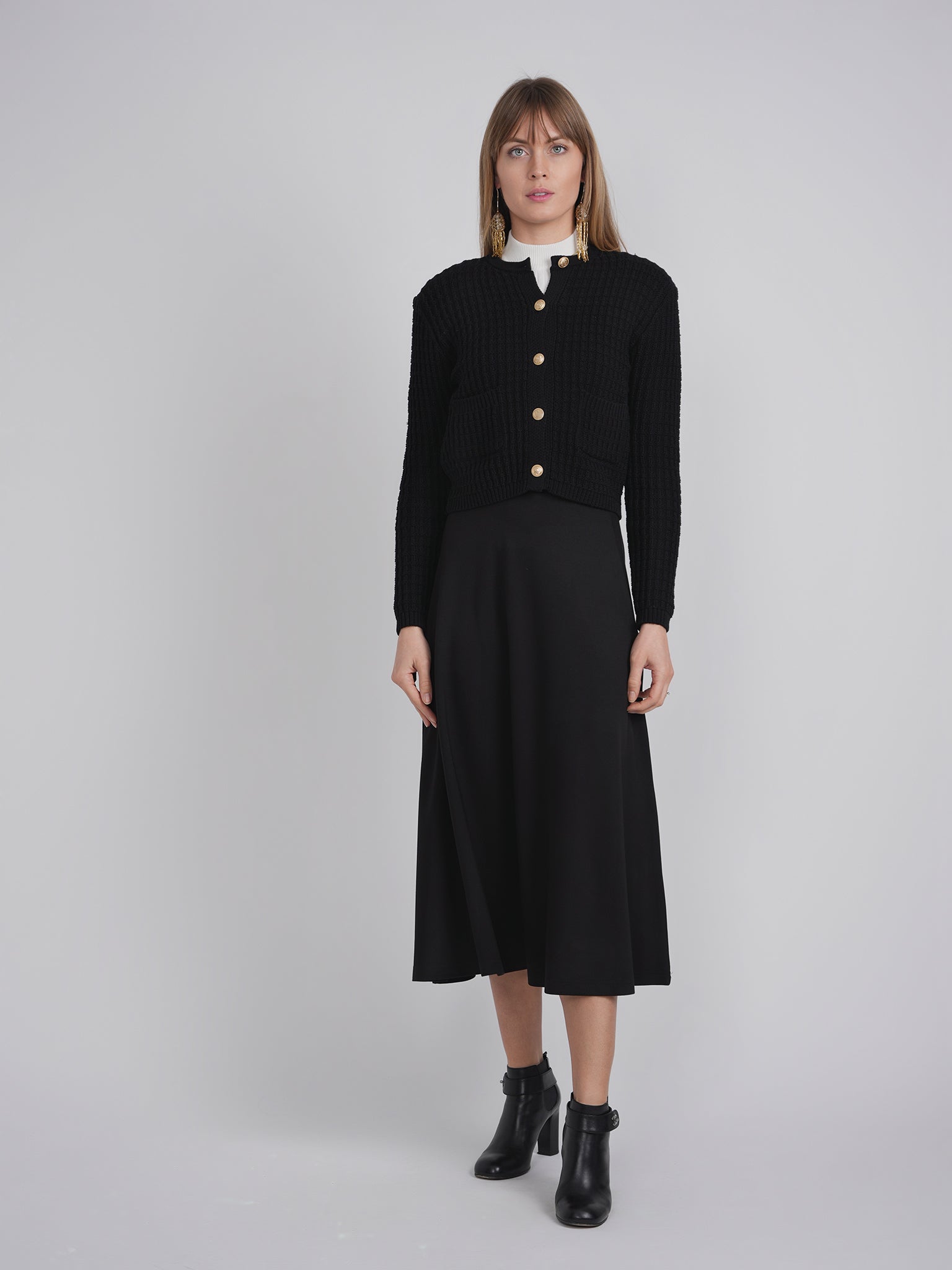 Crochet Knit Short Cardigan ‐ Black / XS