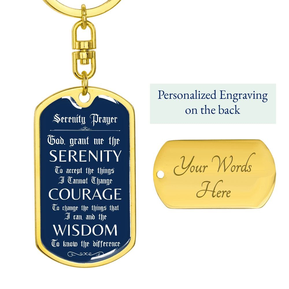 Custom Recovery Dog Tag Keychain | Inspiring Sobriety | The Serenity Prayer ‐ Dog Tag with Swivel Keychain (Gold) / No