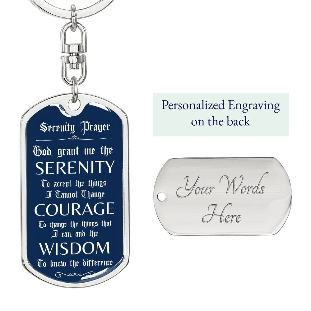 Custom Recovery Dog Tag Keychain | Inspiring Sobriety | The Serenity Prayer ‐ Dog Tag with Swivel Keychain (Steel) / Yes