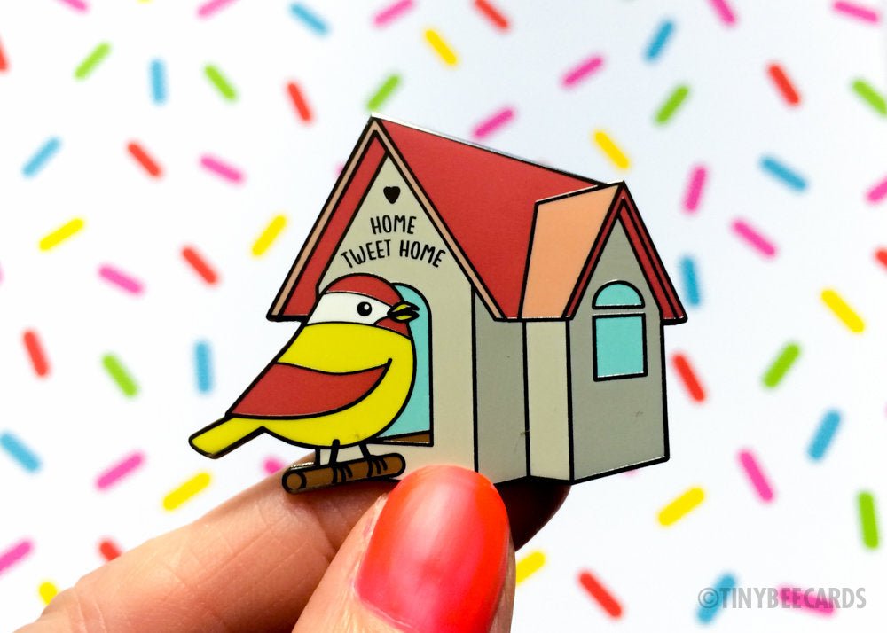 Cute Bird Hard Enamel Pin "Home Tweet Home"