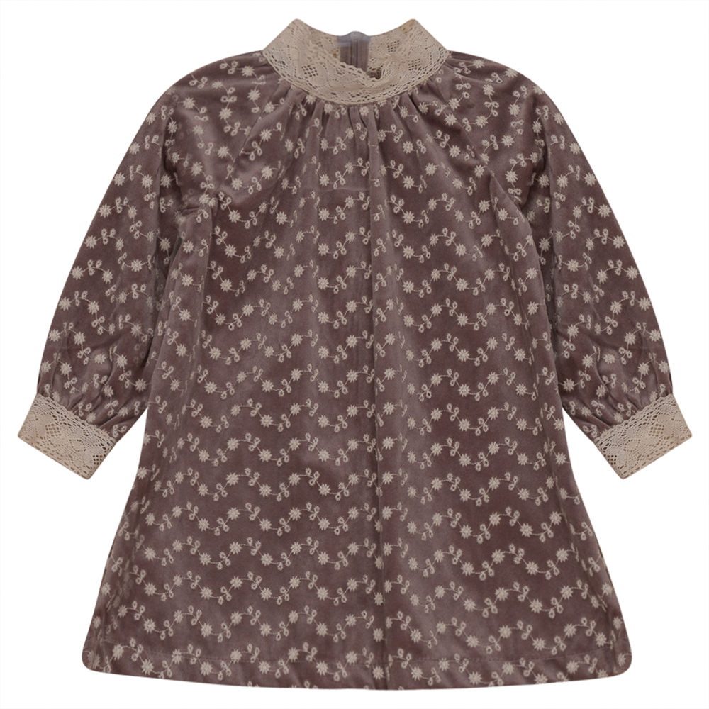 Embroidered Velvet Dress ‐ Brown Print / 20