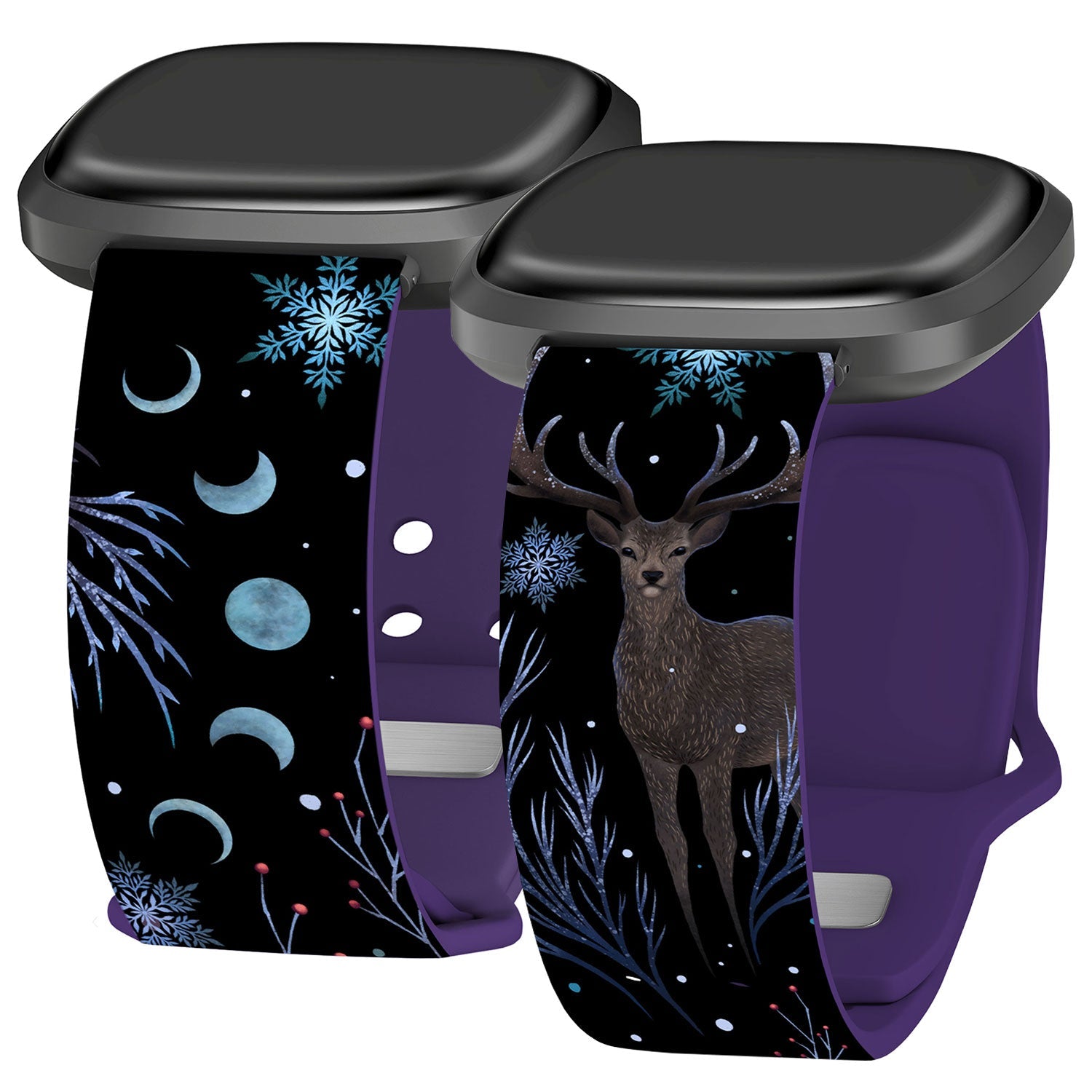 Episodic Drawing Enchanted Collection HD Fitbit Versa 3 & Sense 1 Watch Band ‐ Deer In Winter / Long