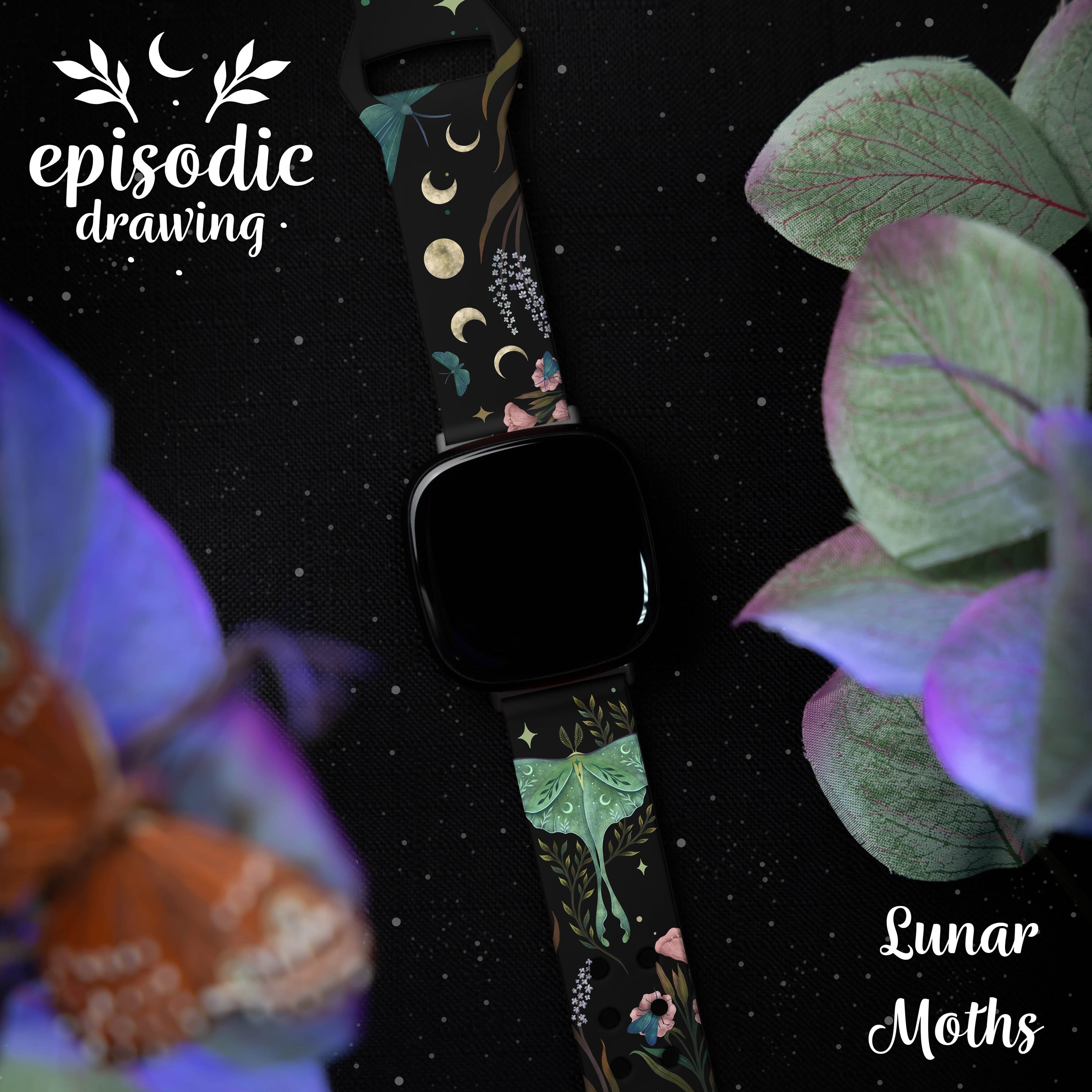 Episodic Drawing Enchanted Collection HD Fitbit Versa 3 & Sense 1 Watch Band ‐ Lunar Moths / Long