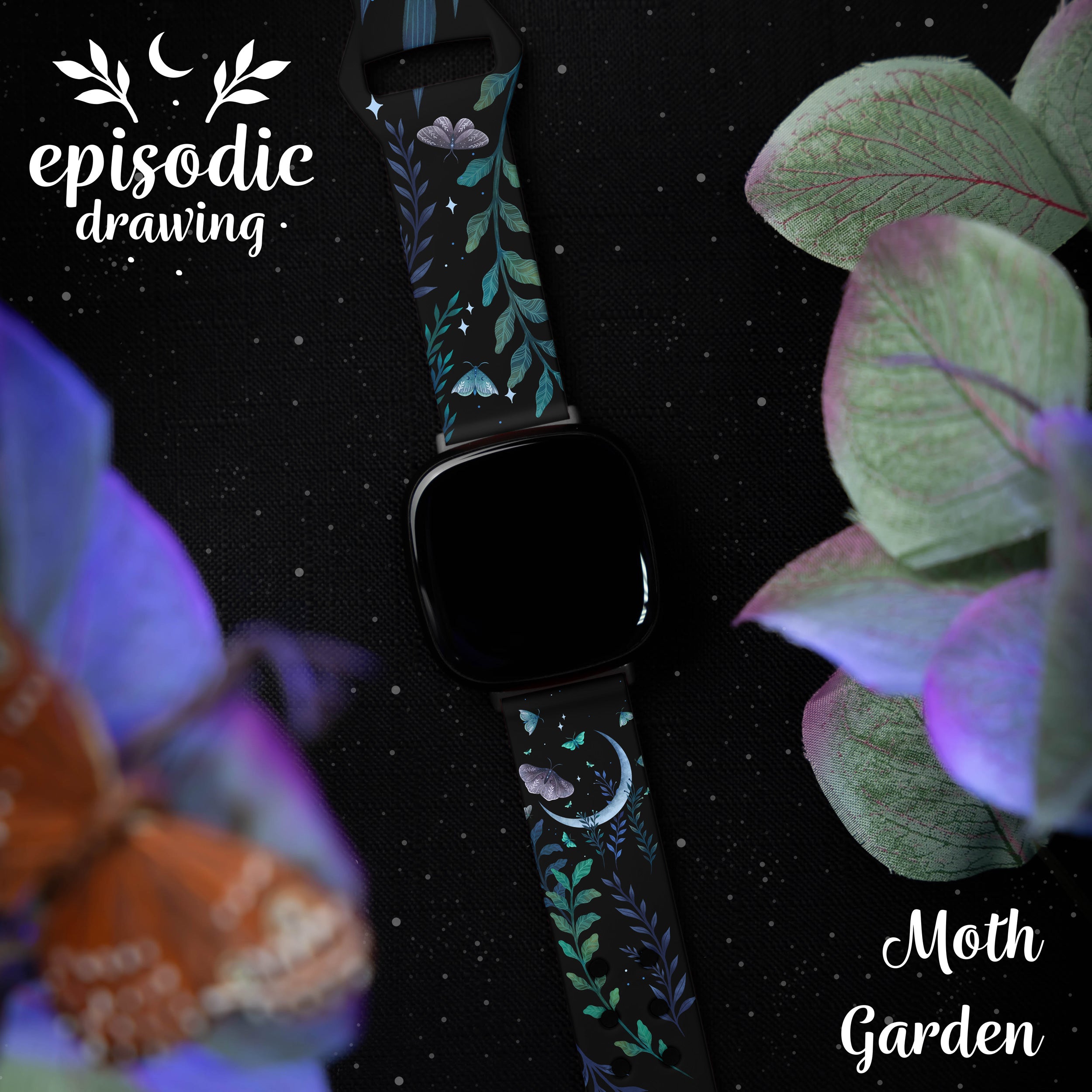 Episodic Drawing Enchanted Collection HD Fitbit Versa 3 & Sense 1 Watch Band ‐ Moth Garden / Long