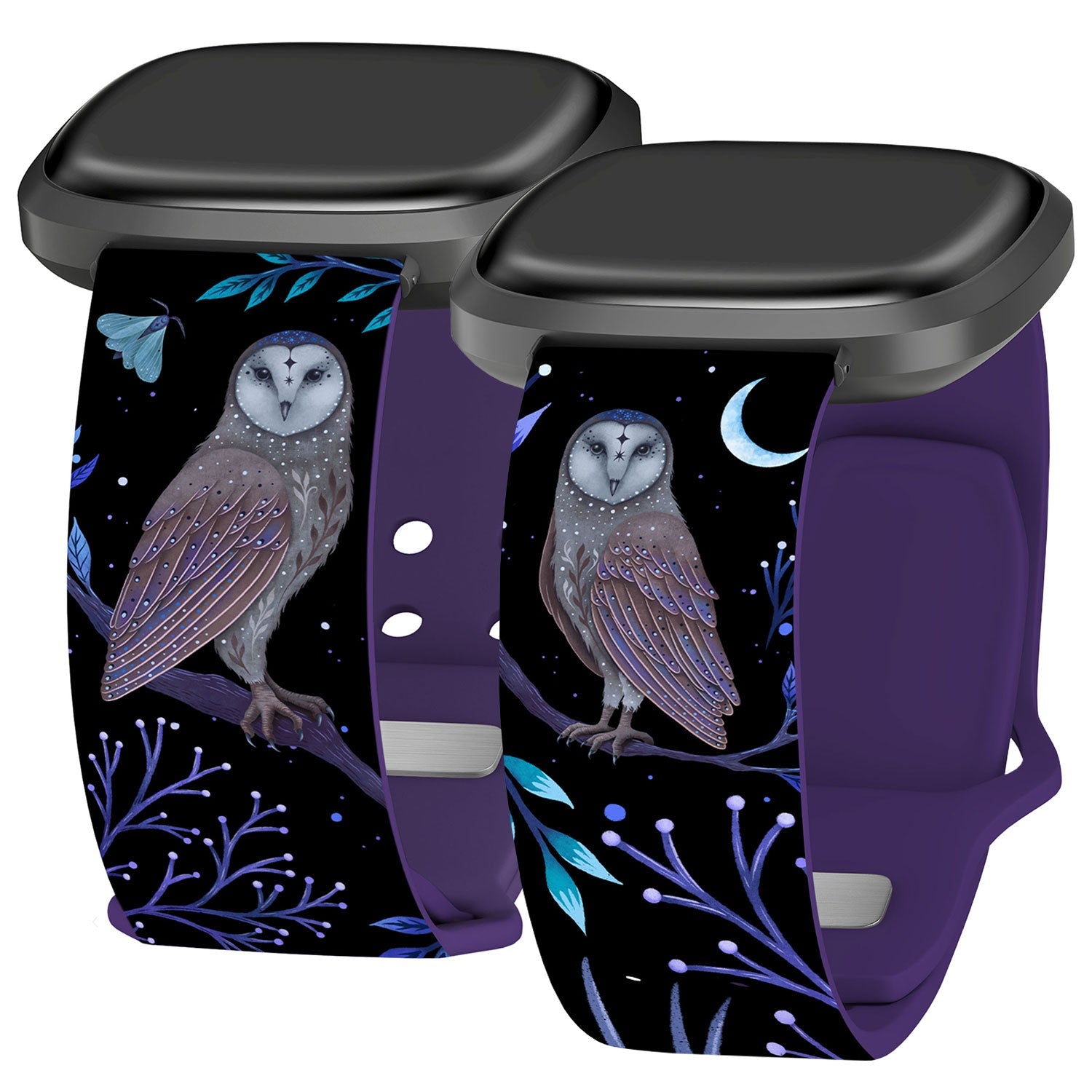 Episodic Drawing Enchanted Collection HD Fitbit Versa 3 & Sense 1 Watch Band ‐ Moonlight Owls / Short