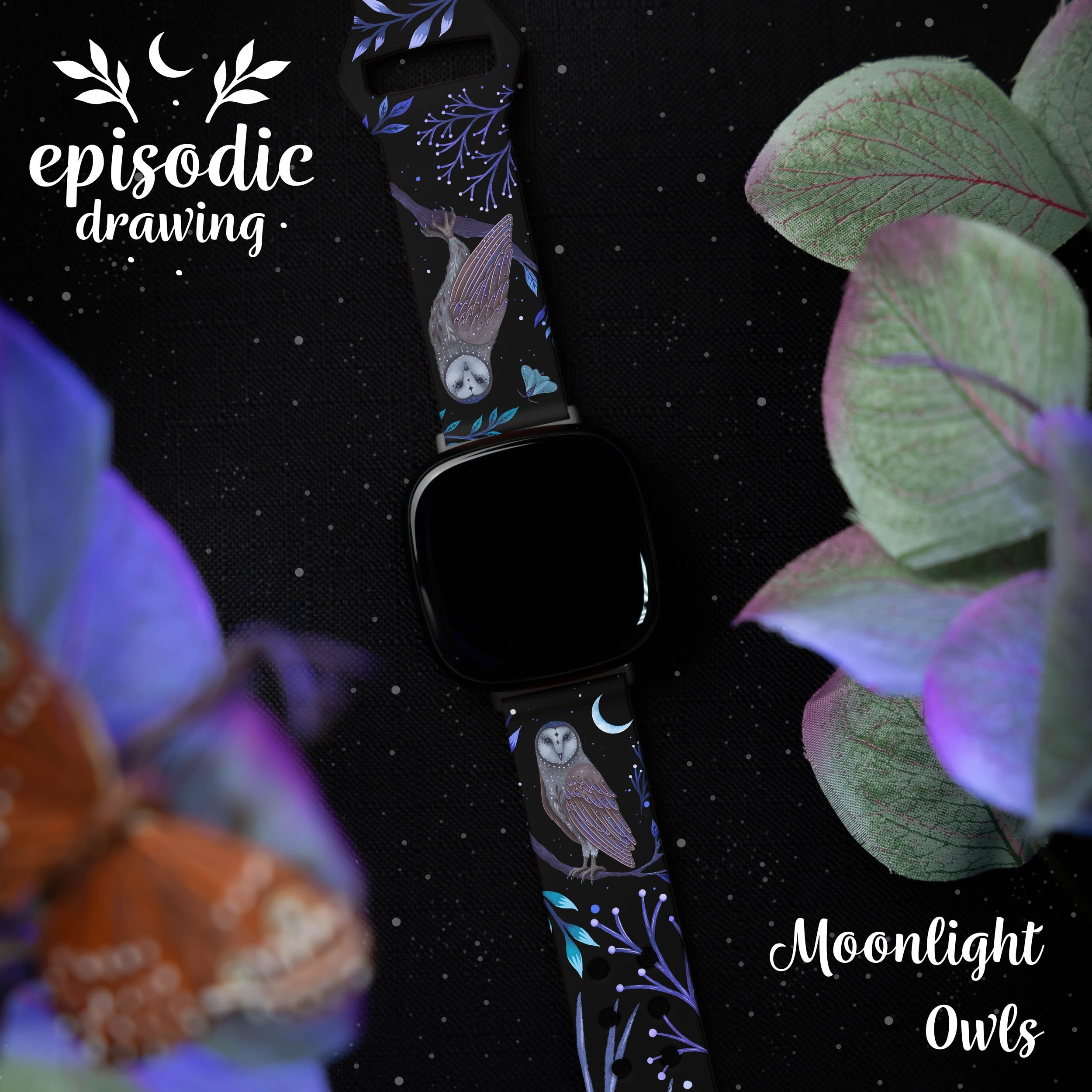 Episodic Drawing Enchanted Collection HD Fitbit Versa 3 & Sense 1 Watch Band ‐ Moonlight Owls / Long