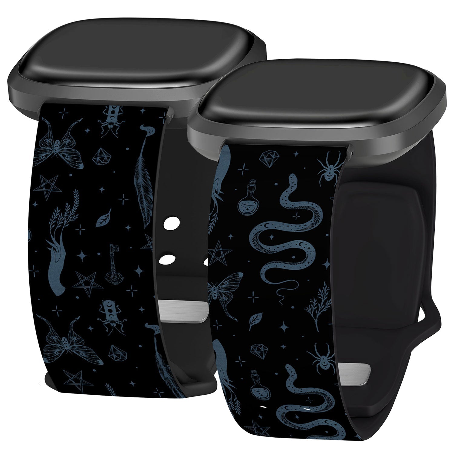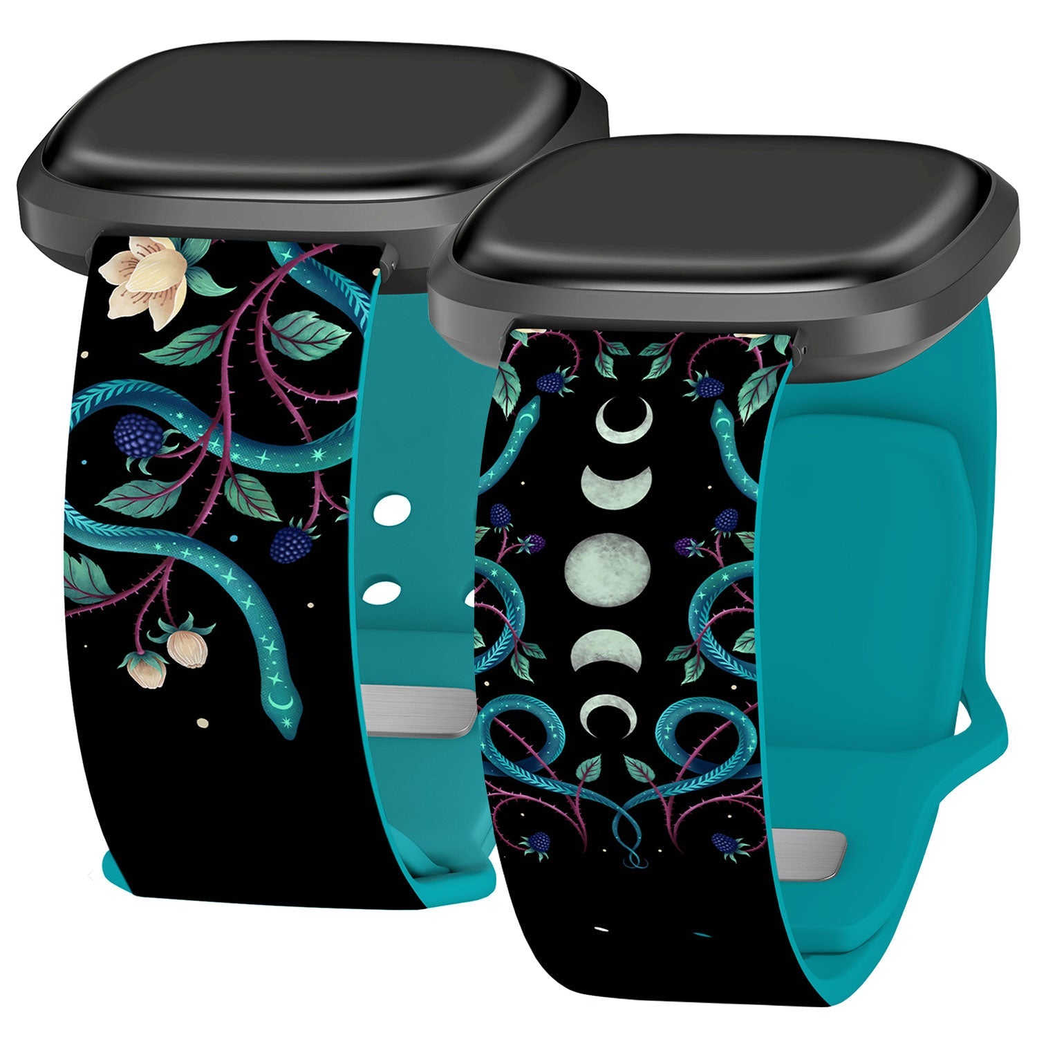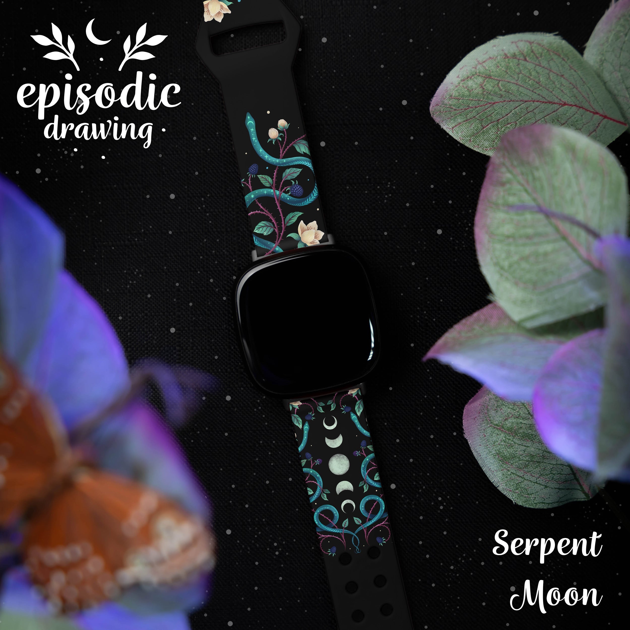 Episodic Drawing Enchanted Collection HD Fitbit Versa 3 & Sense 1 Watch Band ‐ Serpent Moon / Short