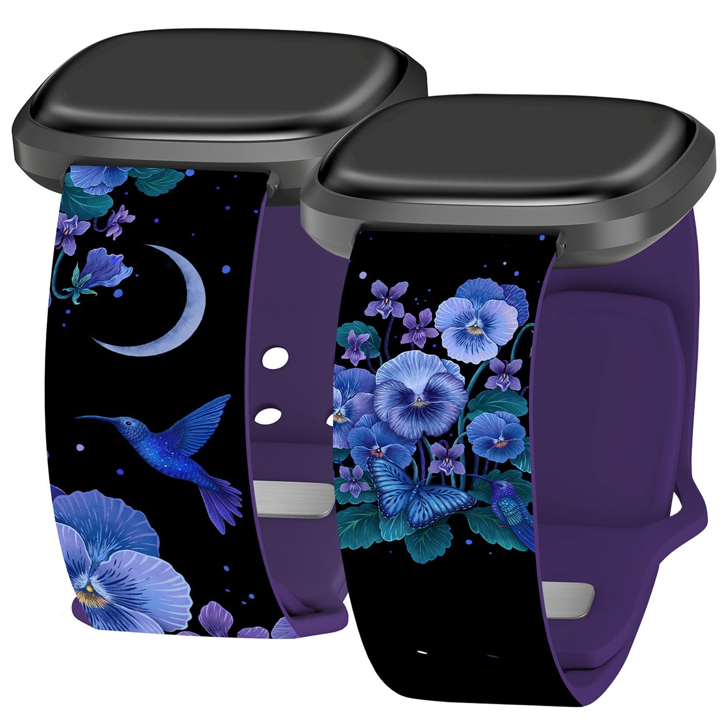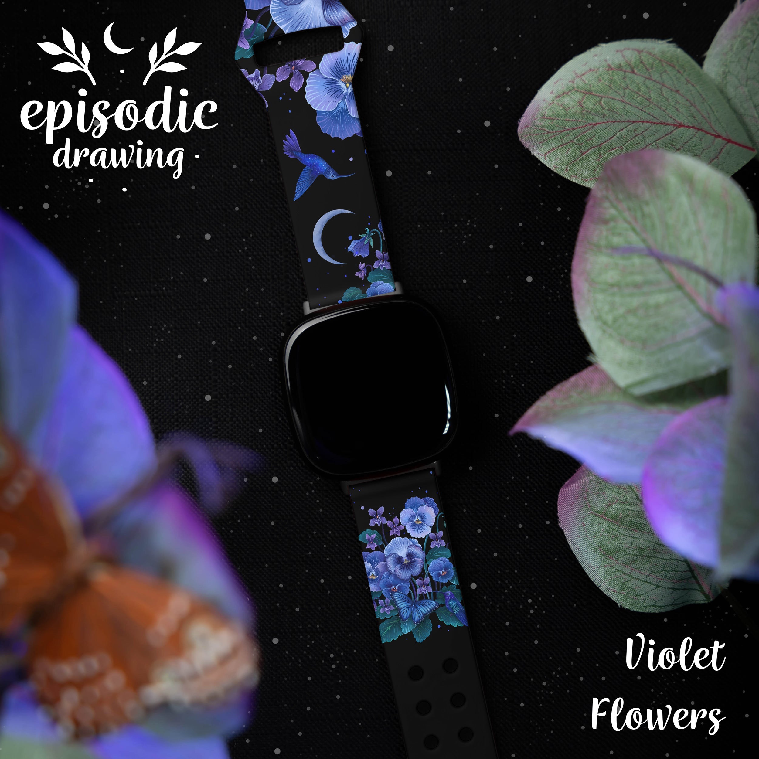 Episodic Drawing Enchanted Collection HD Fitbit Versa 3 & Sense 1 Watch Band ‐ Violet Flowers / Short