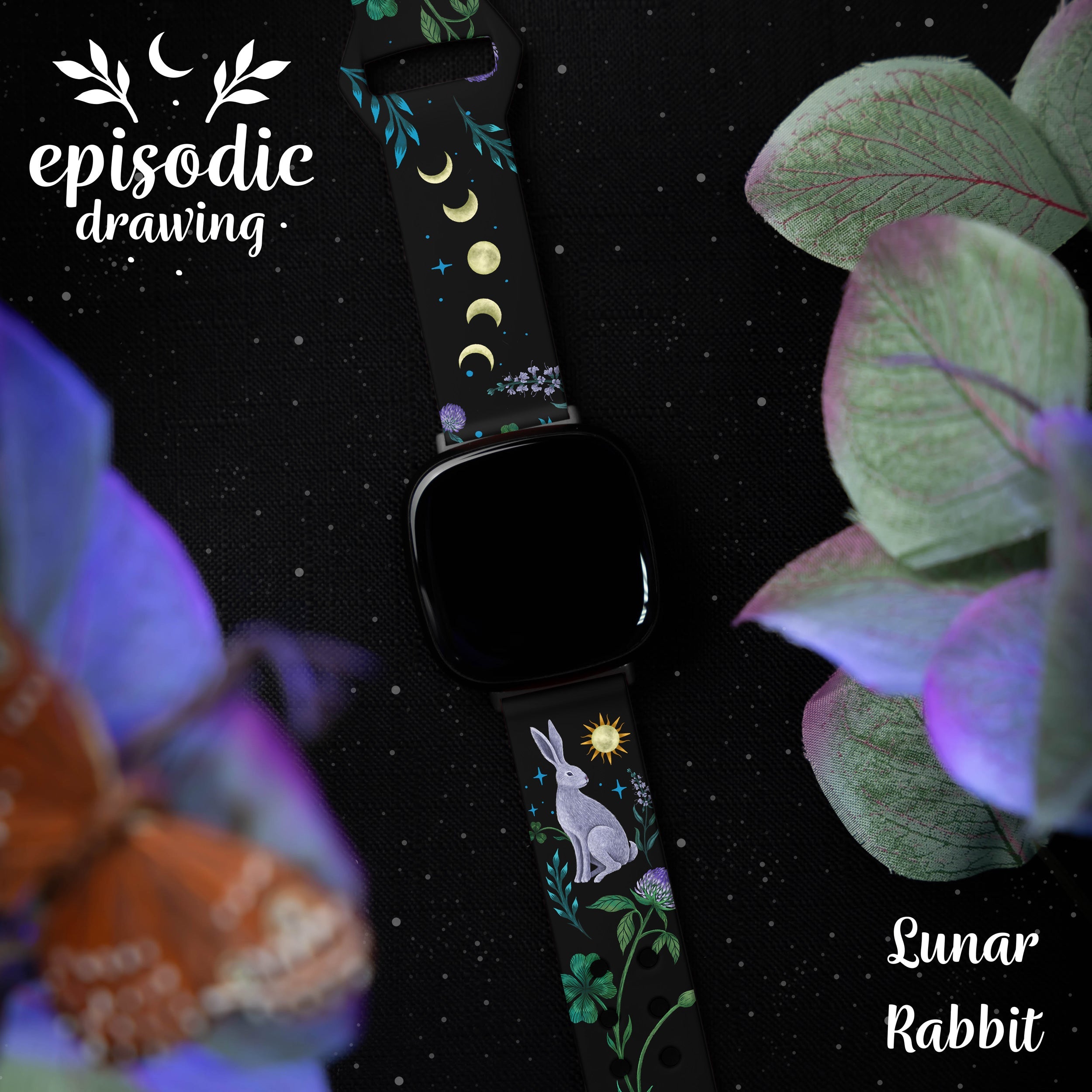 Episodic Drawing Enchanted Collection HD Fitbit Versa 3 & Sense 1 Watch Band ‐ Lunar Rabbit / Short