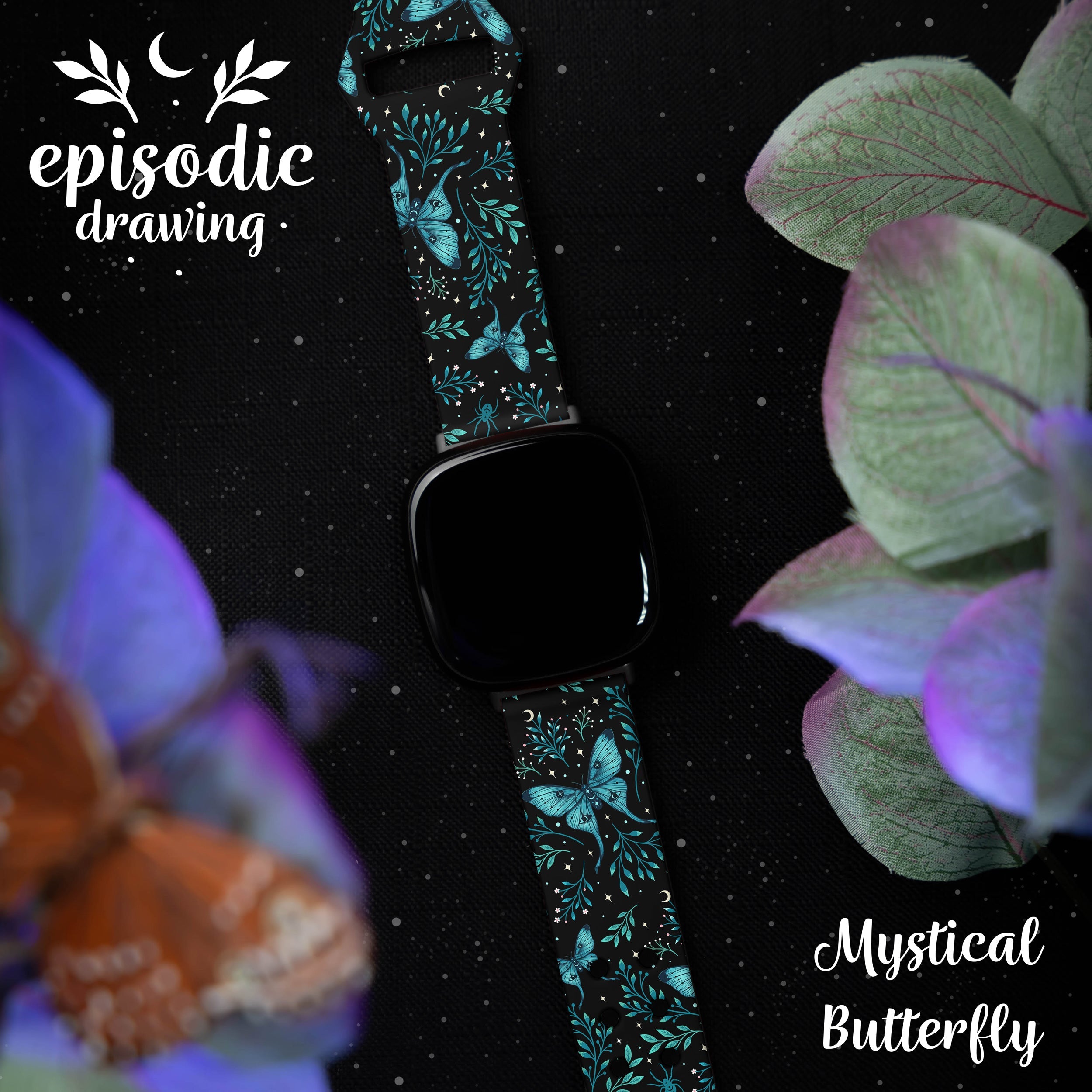 Episodic Drawing Enchanted Collection HD Fitbit Versa 3 & Sense 1 Watch Band ‐ Mystical Butterfly / Short