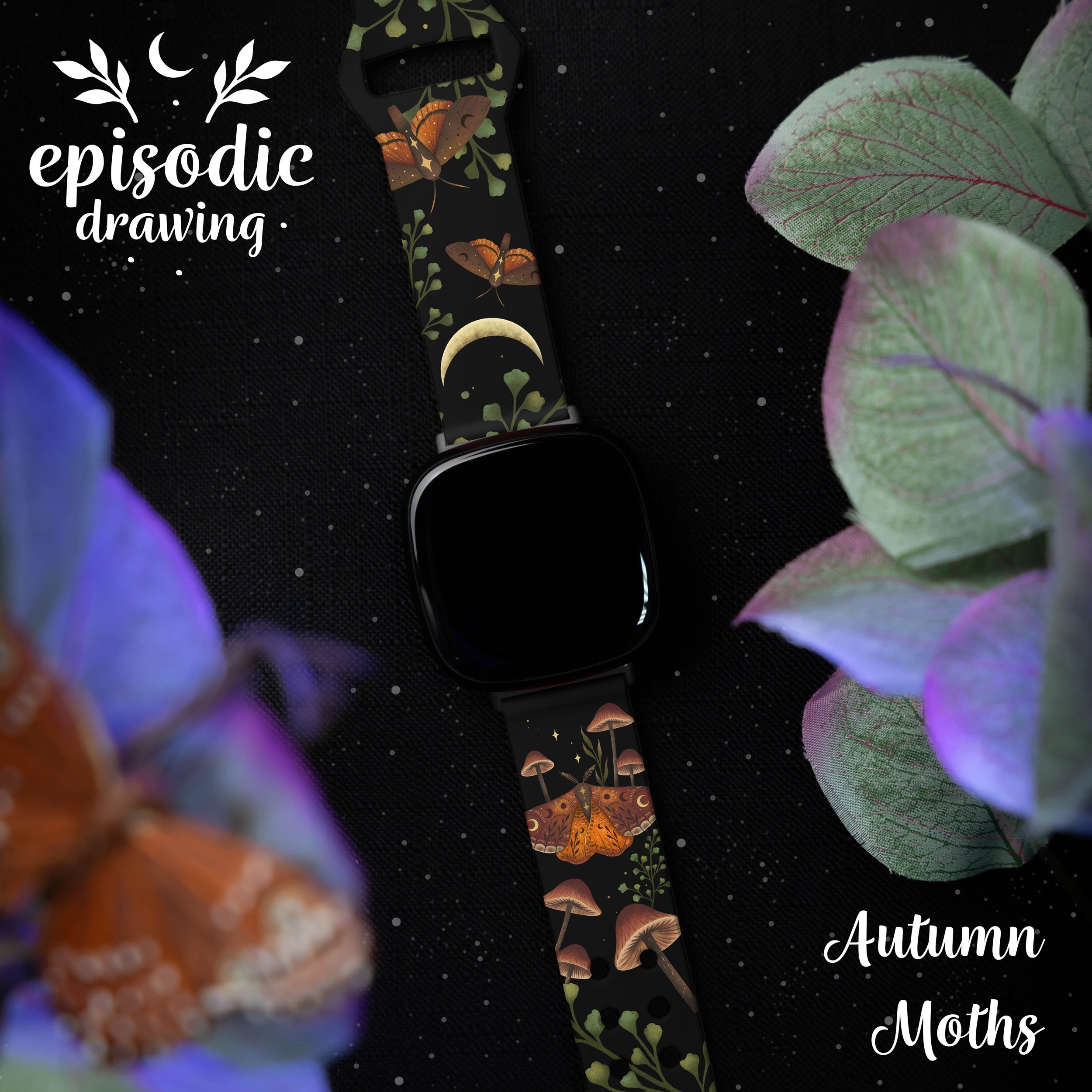 Episodic Drawing Enchanted Collection HD Fitbit Versa 3 & Sense 1 Watch Band ‐ Autumn Moths / Short