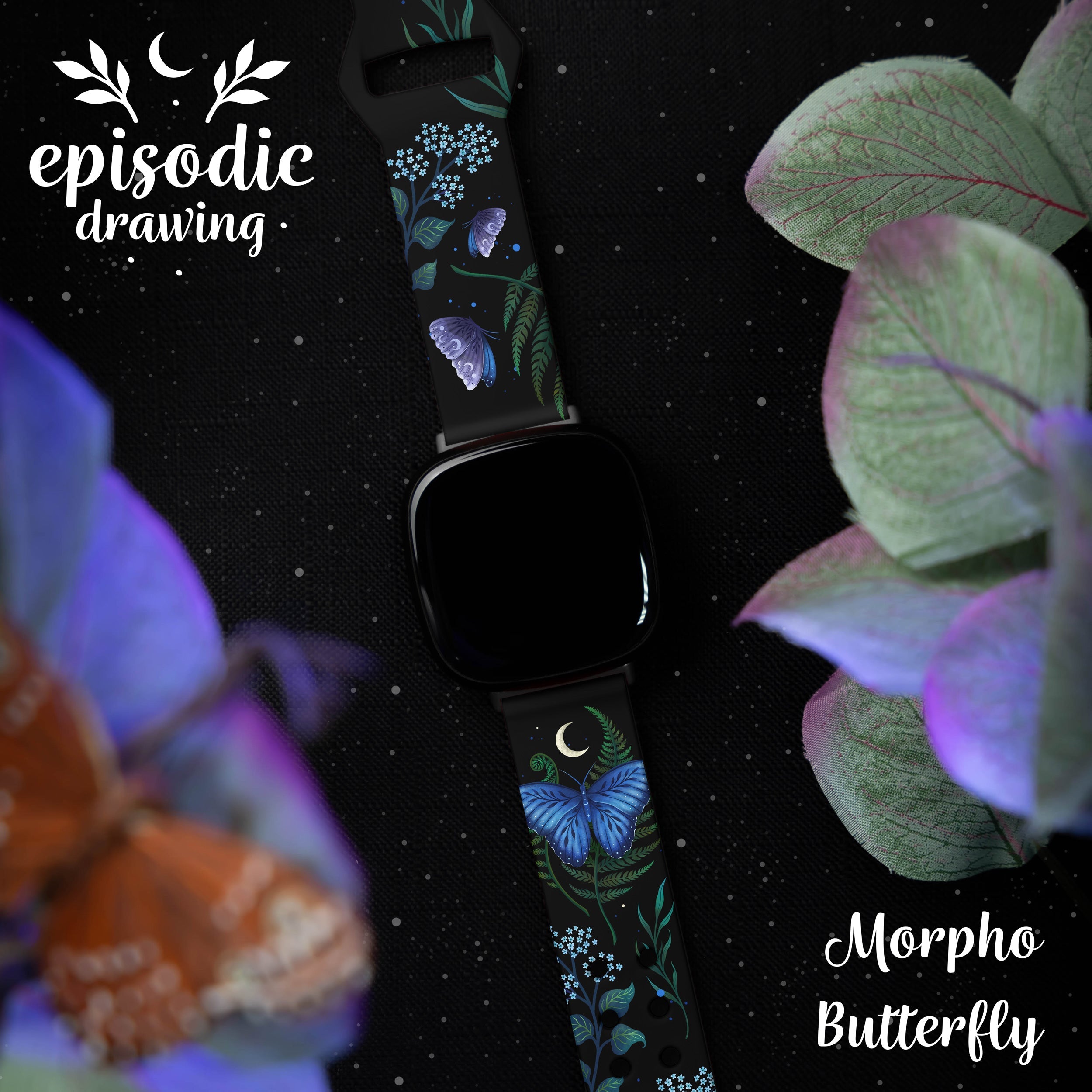 Episodic Drawing Enchanted Collection HD Fitbit Versa 3 & Sense 1 Watch Band ‐ Morpho Butterfly / Short