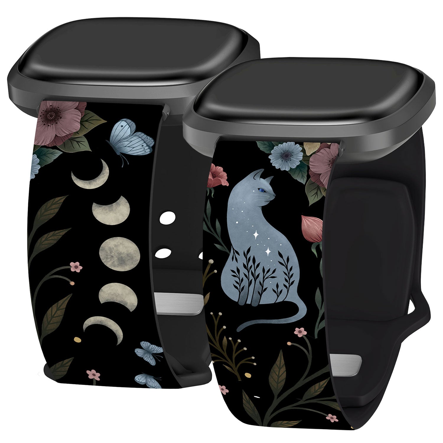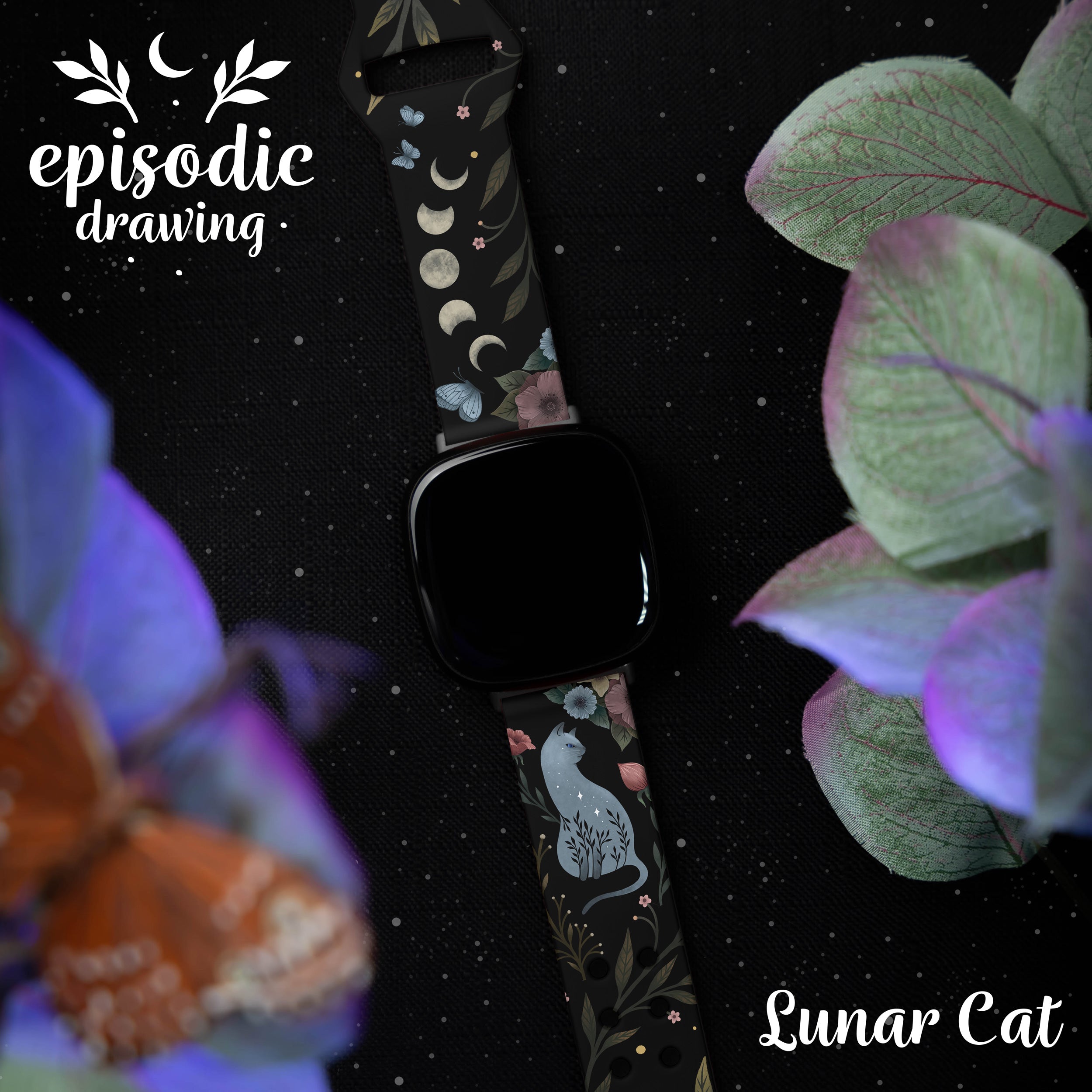 Episodic Drawing Enchanted Collection HD Fitbit Versa 3 & Sense 1 Watch Band ‐ Lunar Cat / Short