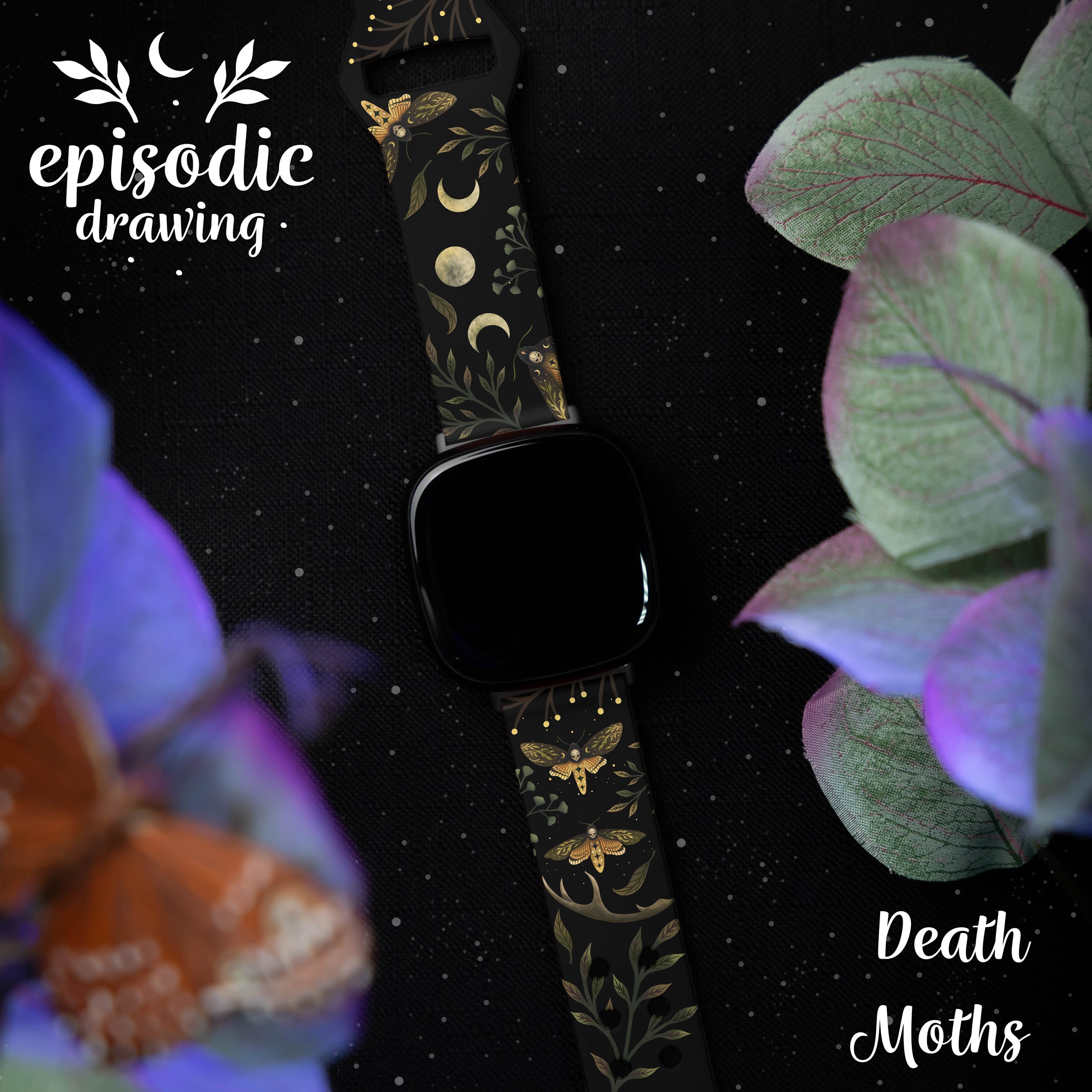 Episodic Drawing Enchanted Collection HD Fitbit Versa 3 & Sense 1 Watch Band ‐ Death Moths / Short