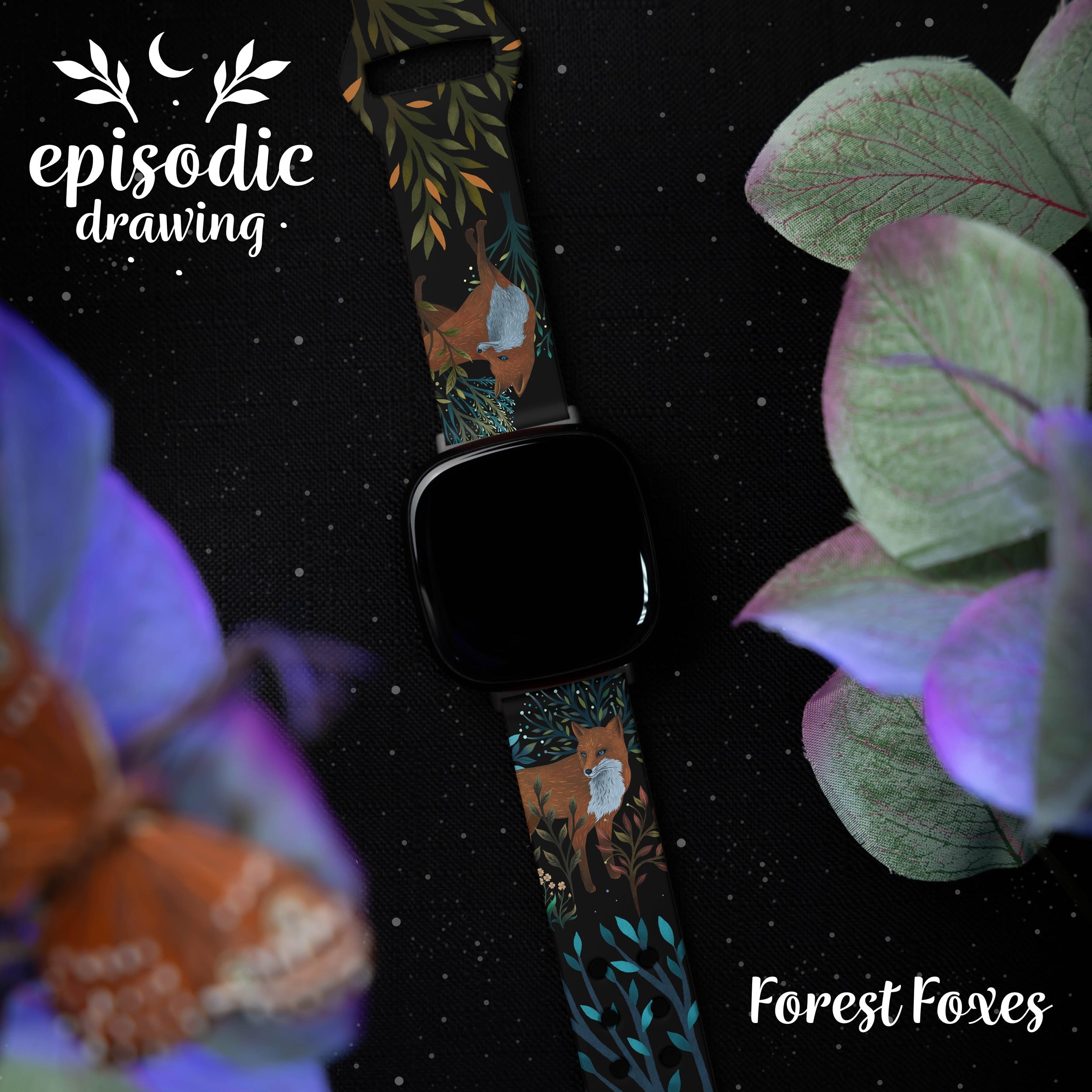 Episodic Drawing Enchanted Collection HD Fitbit Versa 3 & Sense 1 Watch Band ‐ Forest Foxes / Short