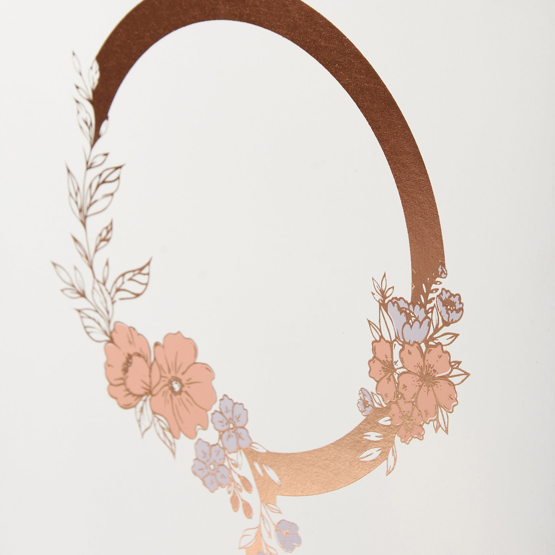 An elegant wooden box sign displaying a uniquely inspired design of a female gender symbol with bold floral accents and foil that adds shine. Sides feature natural wood for added interest. Easy to hang or can free-stand alone.