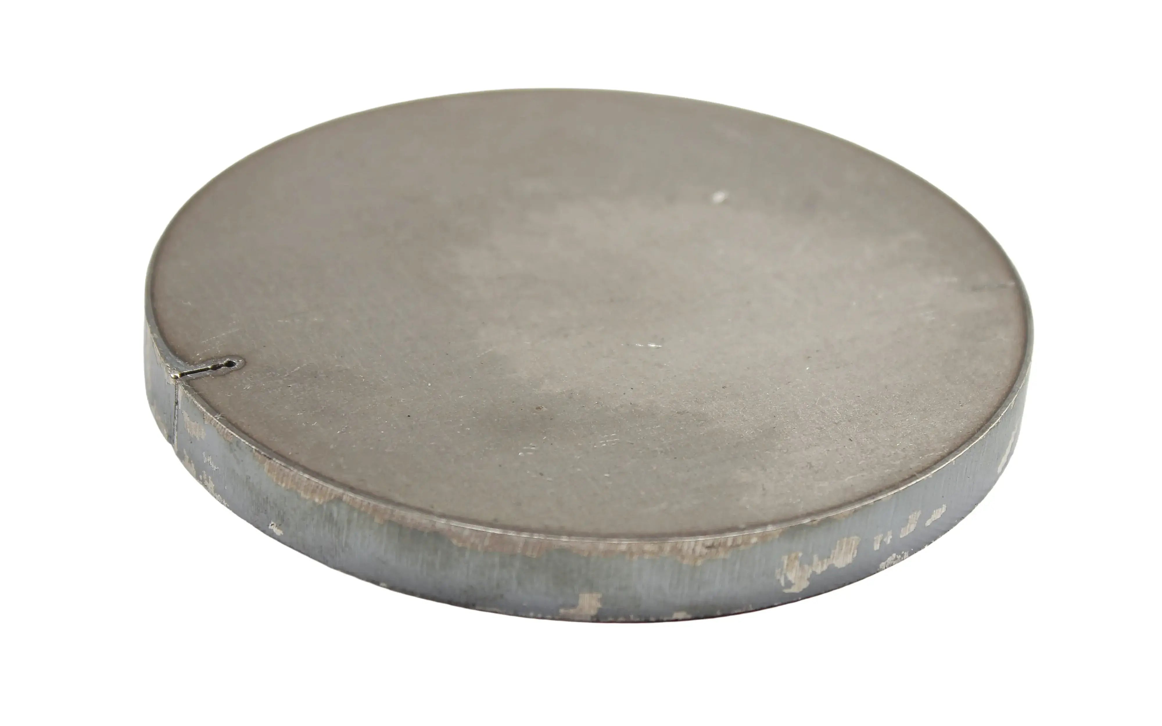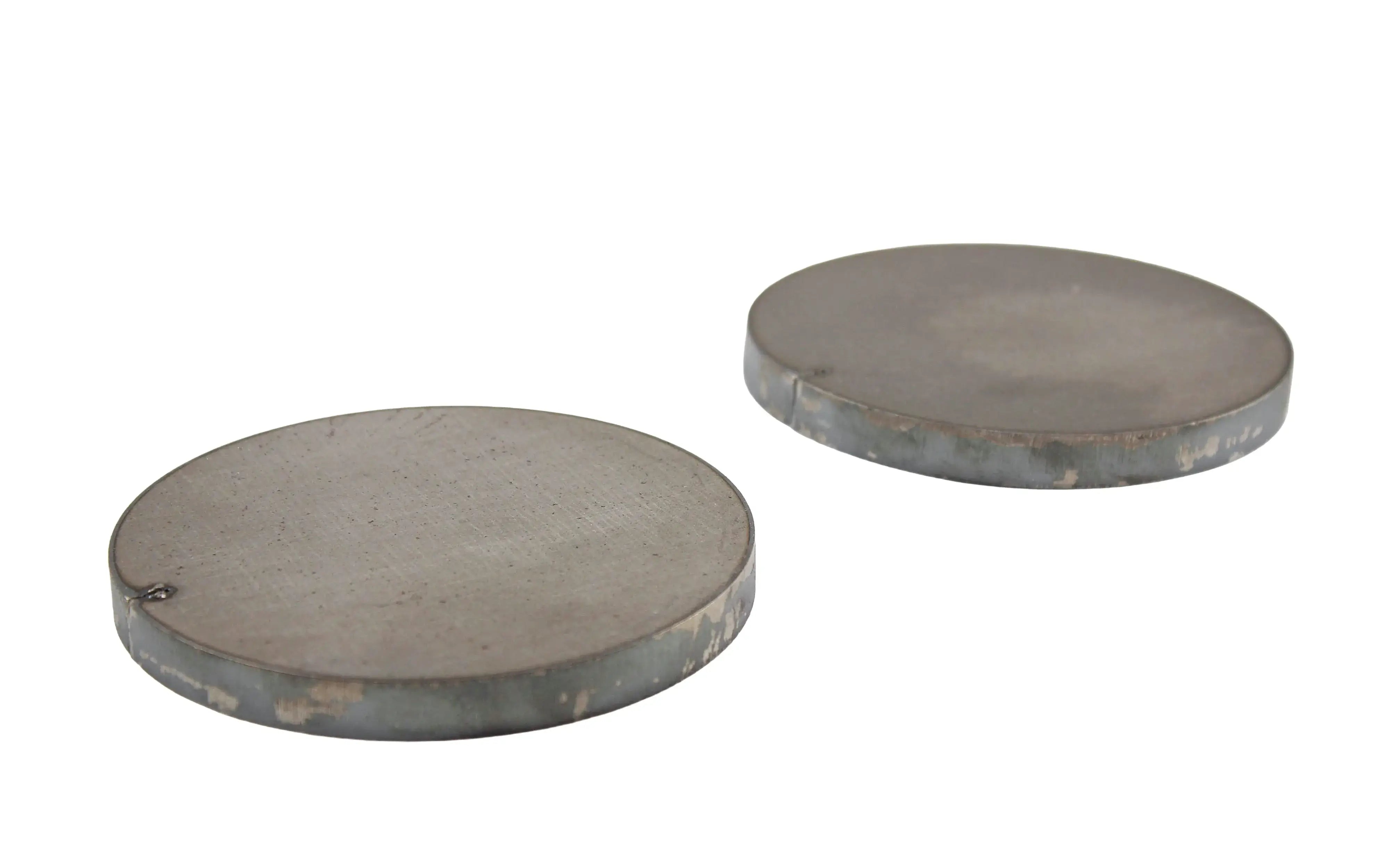 These 3.75" round pads are the centers punched out from our brake brackets, so we’ve always got a limited stash on hand. They’re made from 3/8" thick steel and typically measure around 3.75" in diameter — some vary slightly depending on the bracket they came from.