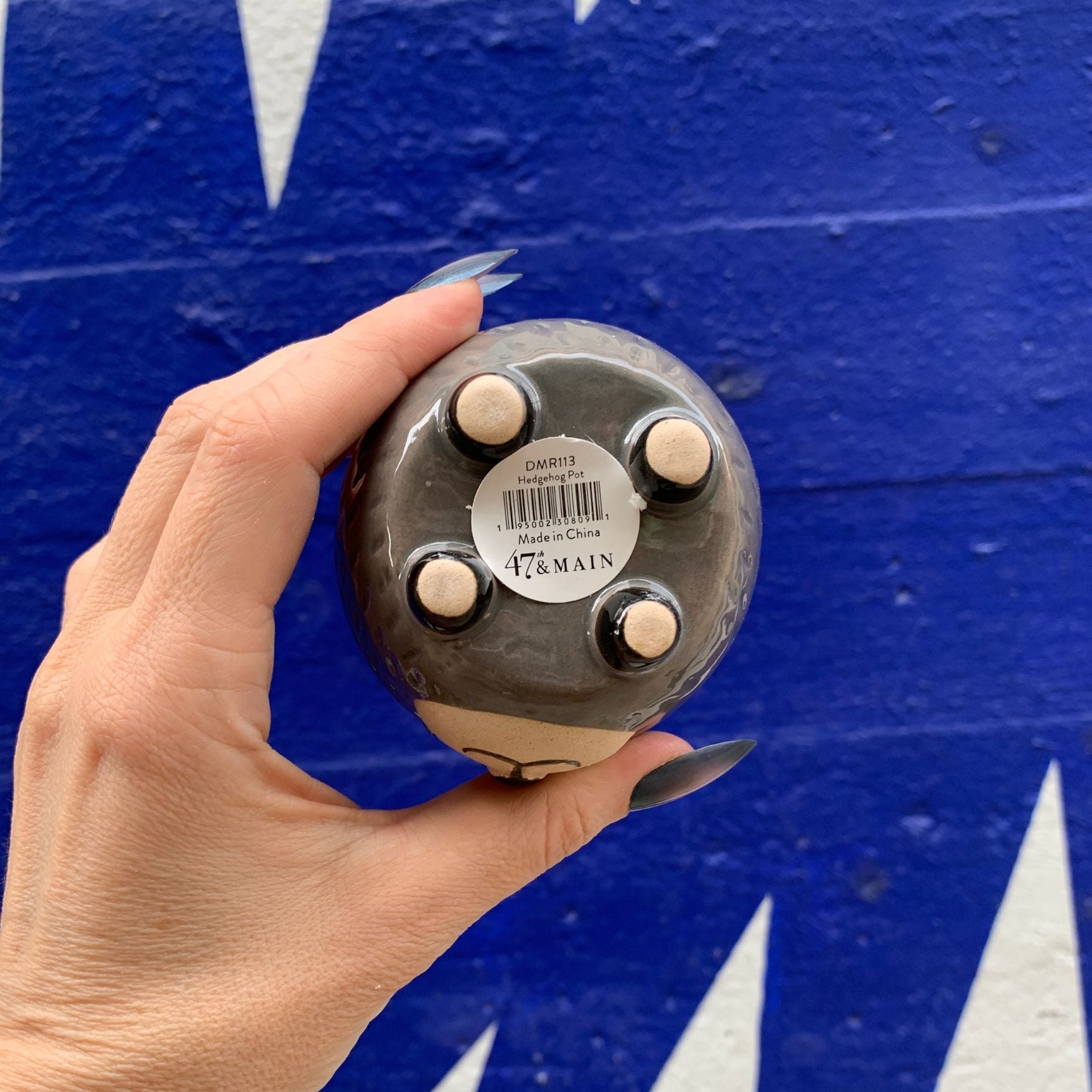 This adorable mini ceramic planter features a playful hedgehog animal design!