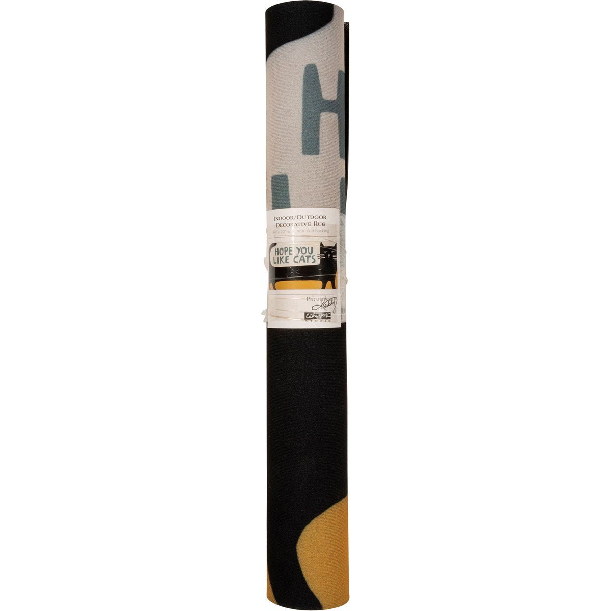 This funny and adorable indoor/outdoor rug features a block print cat design and "Hope You Like Cats" sentiment.