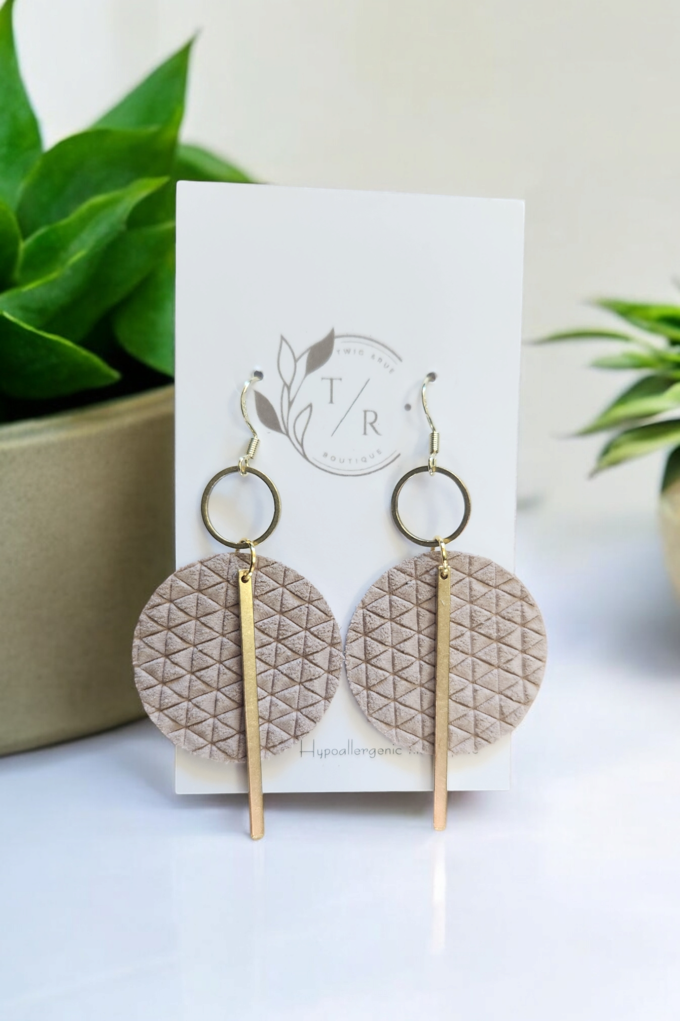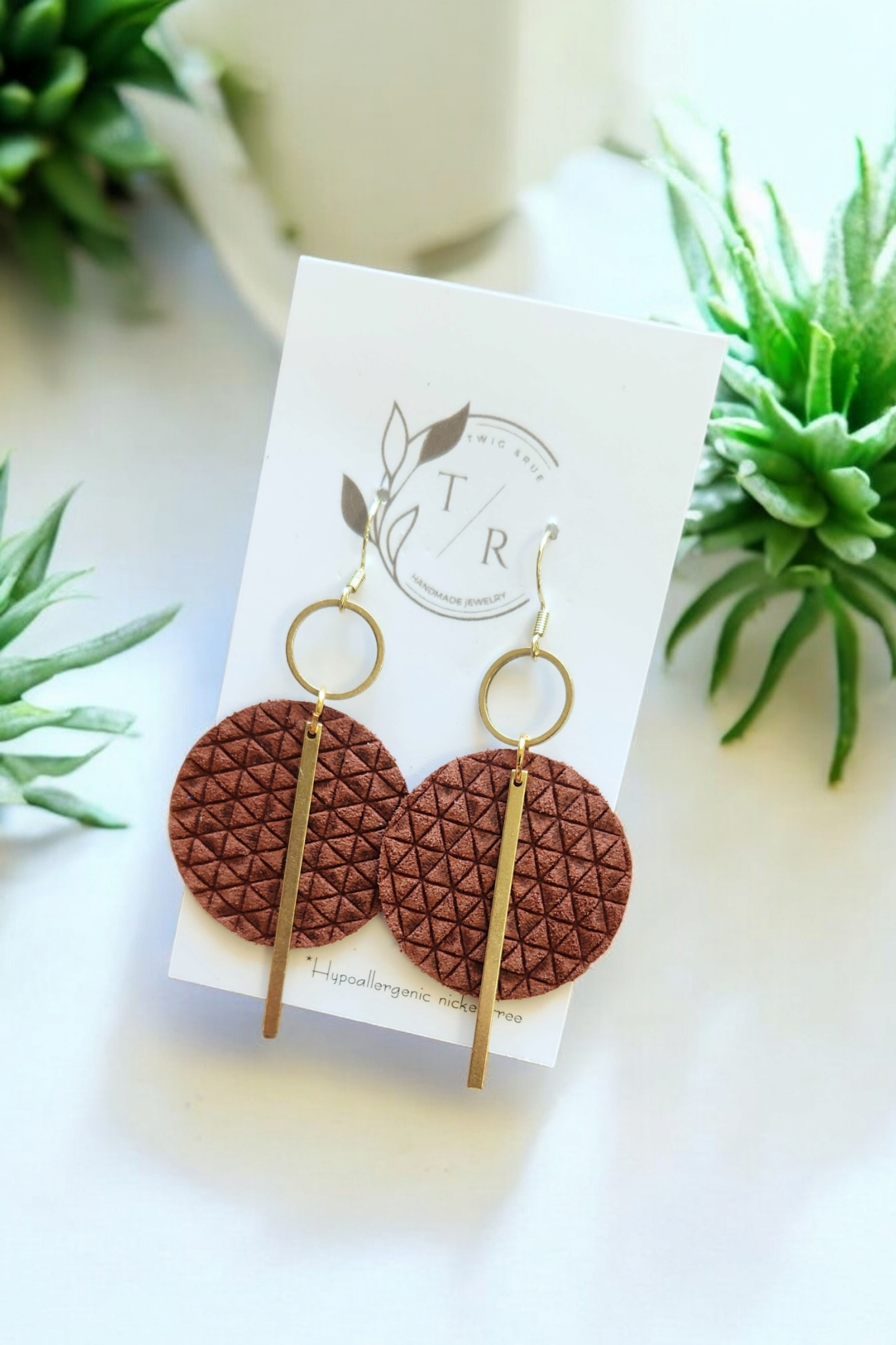 A gorgeous statement earring in genuine leather and brass finding accents.