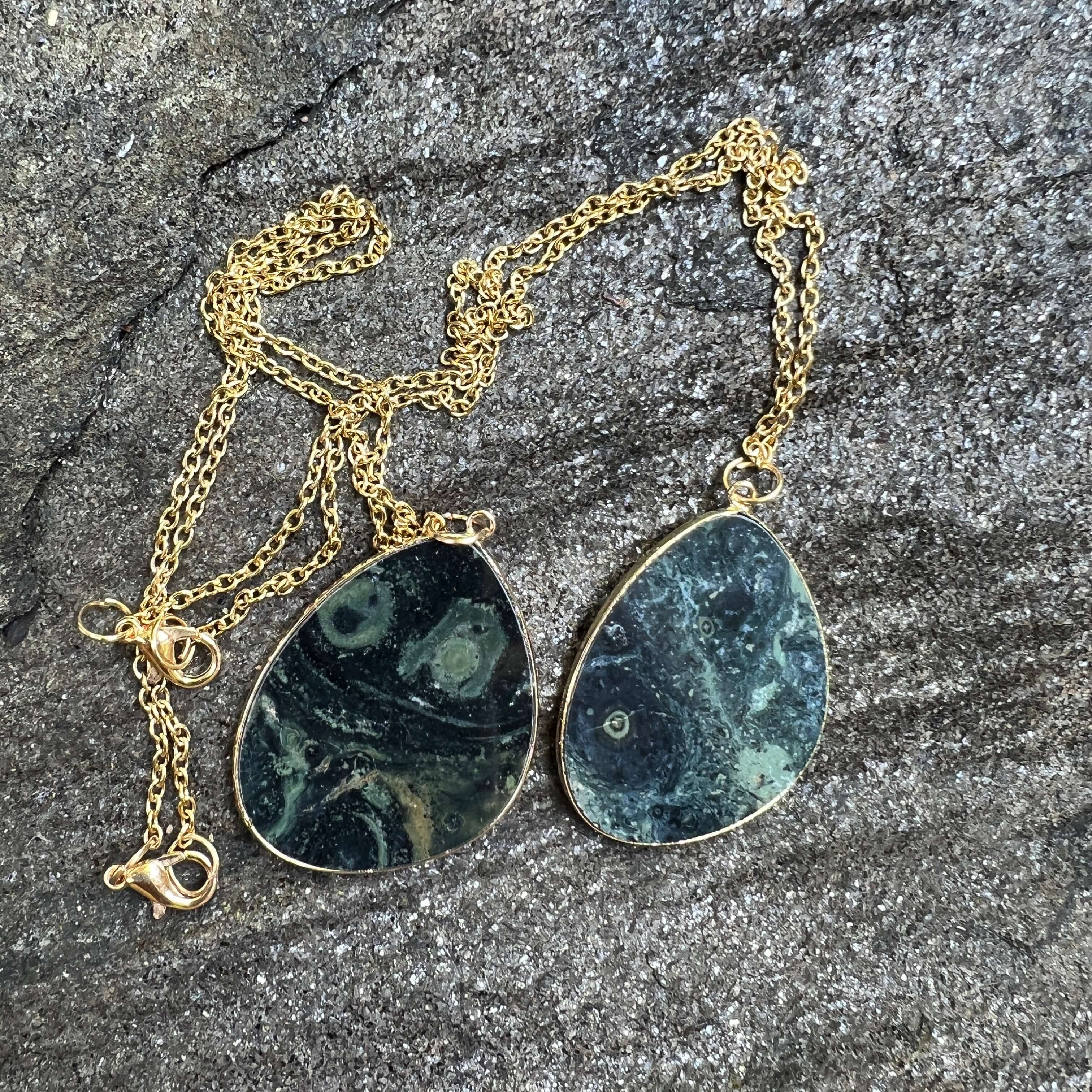This necklace is made with a high-quality Kambaba Jasper stone which brings grounding and protection to the wearer.