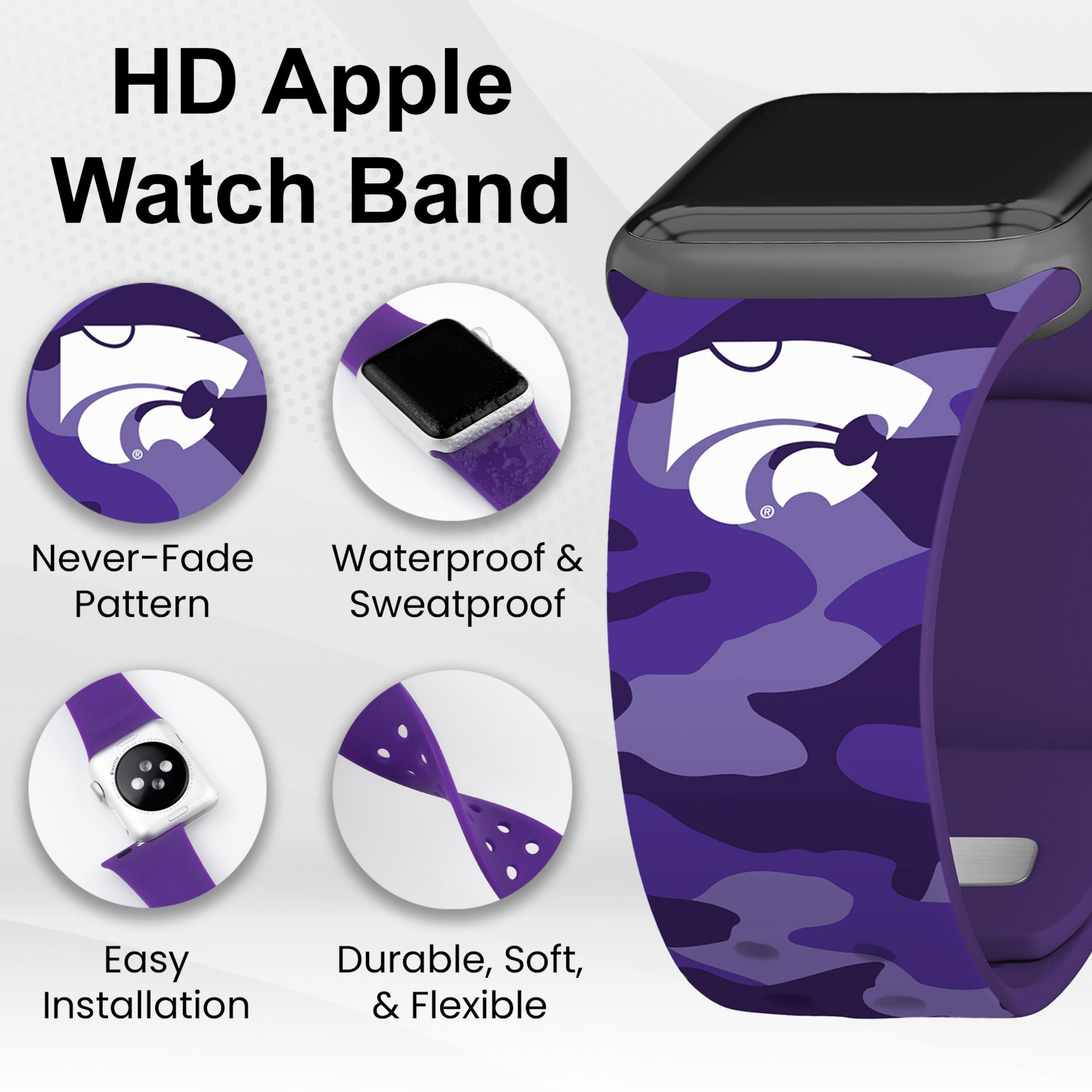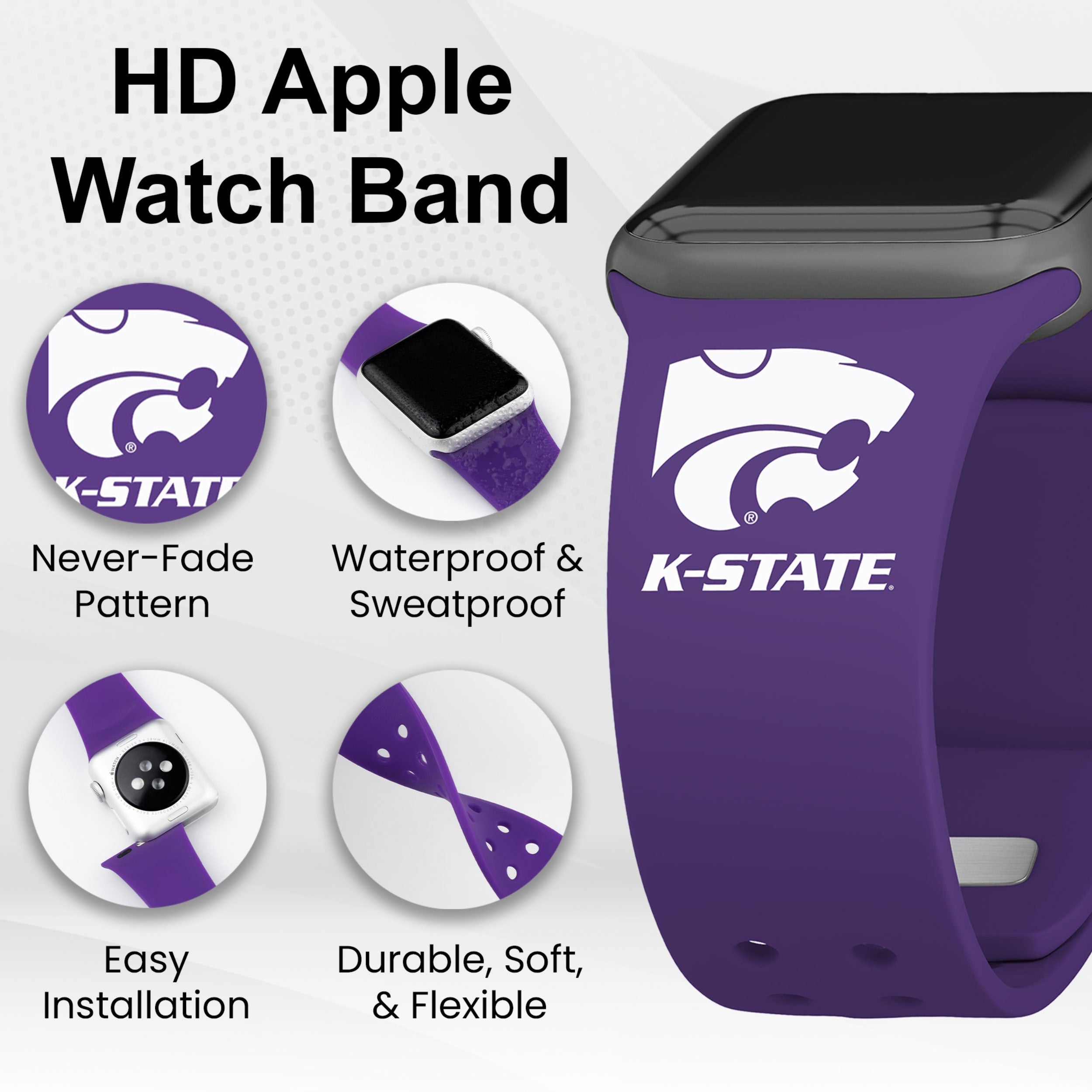 Kansas State Wildcats HD Apple Watch Band ‐ Champion Series / 38/40/41mm(42mm Series 10) / Short